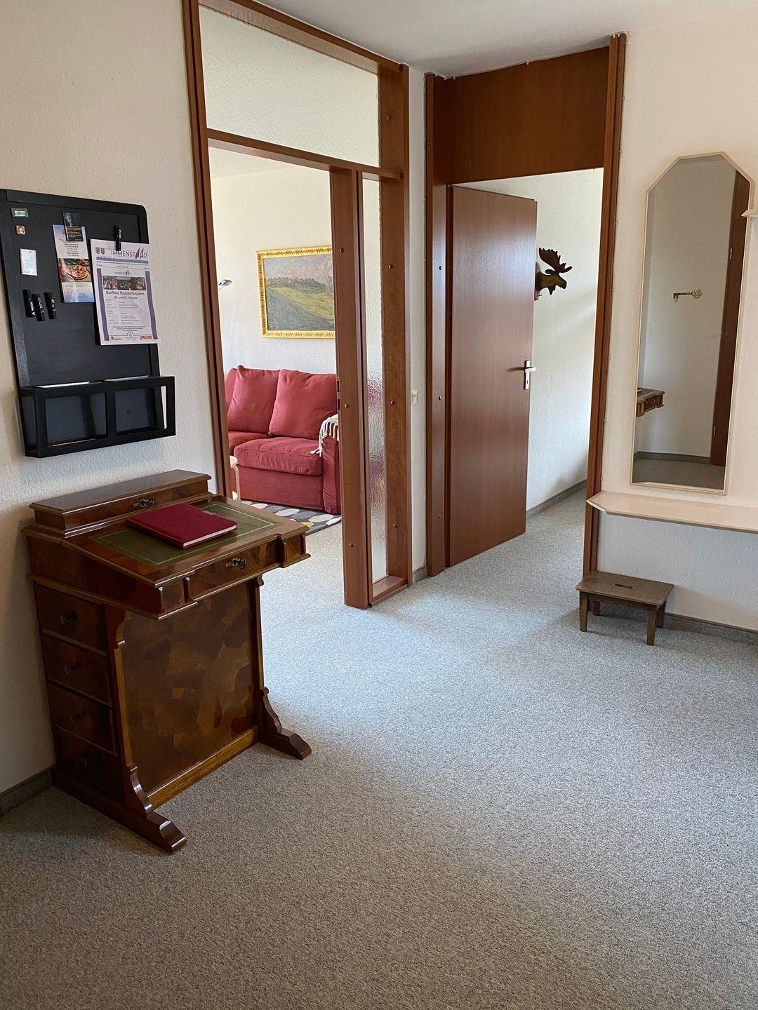Die Wohnung befindet sich im 3. Obergeschoss und ist bequem mit dem Aufzug zugänglich. Vom großzügigen Eingangsbereich mit Garderobe gelangen Sie in das Schlafzimmer mit Stockbetten, ein Duschbad mit kleiner Waschmaschine und den großen Wohn-/Essbereich. Der sonnige Balkon, der nach Süden ausgerichtet ist, lädt dazu ein, bei guter Wetterlage die herrliche Sicht auf die Alpen zu genießen. Vom Wohnbereich haben Sie Zugang zur voll ausgestatteten Küche mit eigenem Essbereich, zum Schlafzimmer mit Doppelbett und zu einem zweiten Tageslichtbad mit Badewanne.