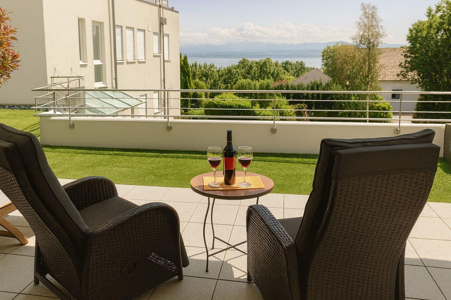 Dieses Appartement ist die ideale Wahl für Paare, die sich eine ruhige Auszeit am Bodensee wünschen. Die Terrasse dieser Unterkunft bietet den perfekten Ort, um bei einem Glas Wein den Blick auf den See zu genießen und einfach die Seele baumeln zu lassen. Hier können Sie sich ungestört entspannen und die malerische Umgebung genießen.