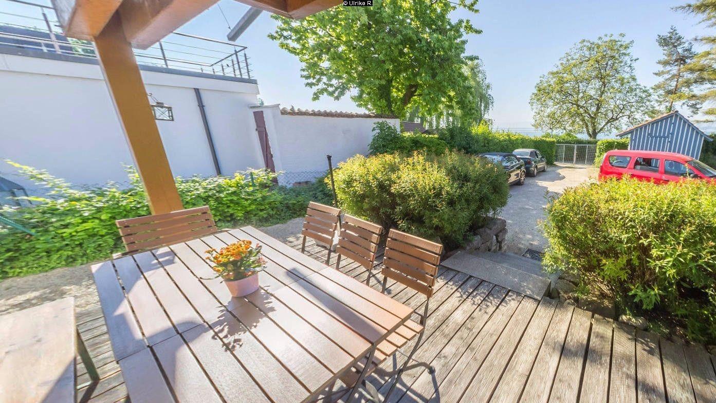 Das helle gemütliche Ferienhaus mit weitläufigem Garten und eigenem Naturstrand ist ein Glücksfall für Ihren Traumurlaub am Bodensee. Mit drei Schlafzimmern und zwei Bädern fühlen sich auch große Familie wohl. Treffpunkt ist das offene Wohn-Esszimmer mit Theke zur bestens ausgestatteten Küche. Vom Esstisch oder von der angrenzenden Terrasse sieht man den See glitzern. Noch besser vom oberen Balkon mit einem Blick über den See zum Schweizer Ufer und dem Alpenvorland.
