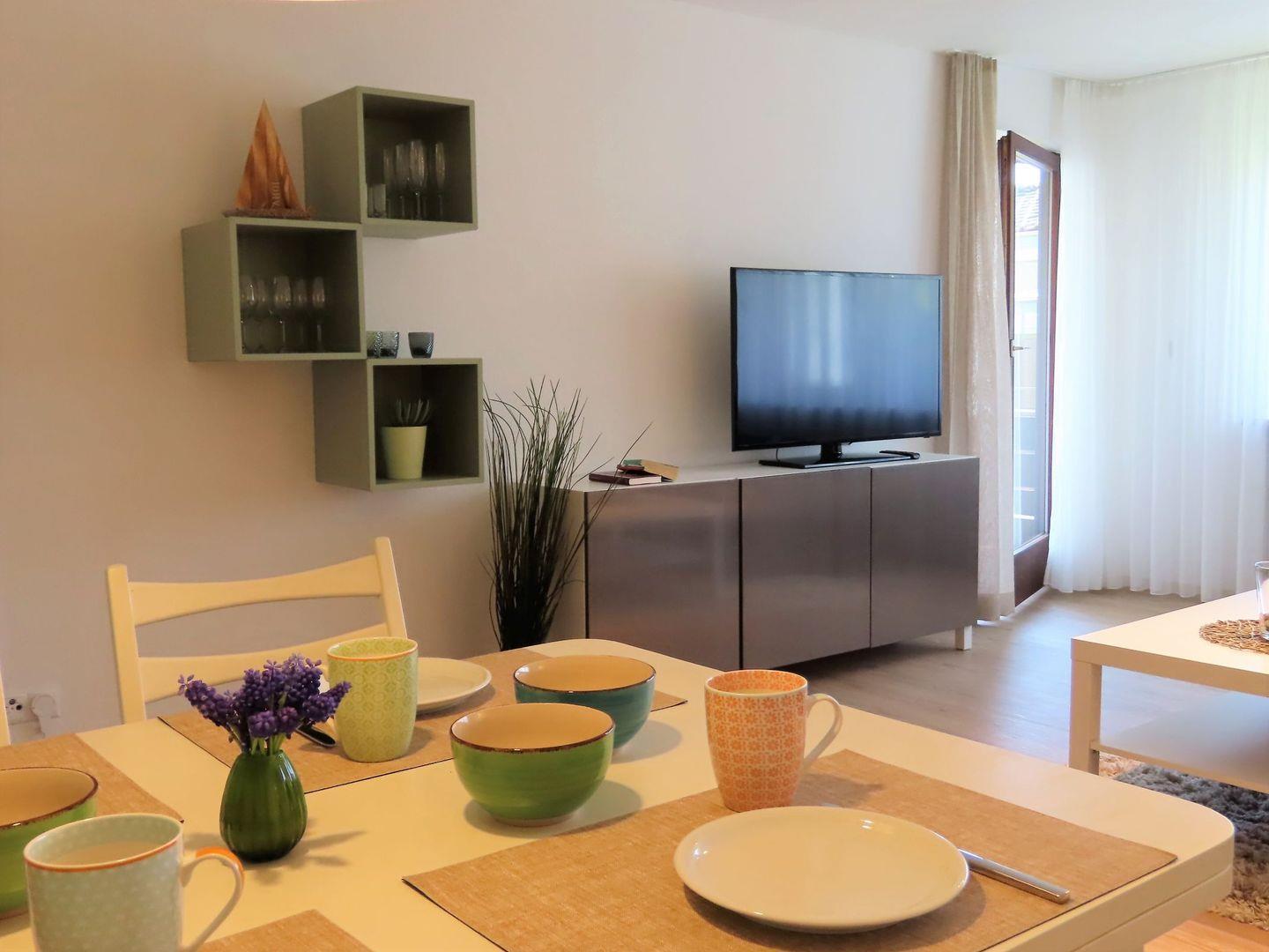 In ruhigen Naturtönen stilvoll eingerichtet, sorgt Ihr Urlaubszuhause für entspannte und erholsame Tage. Highlight ist das idyllische Seegrundstück, das allen Hausgästen offensteht. Mit verschiedenen Sitzgelegenheiten, Liegen und einem Naturkiesstrand. Sie baden in Trinkwasserqualität mit Blick auf die imposanten Schweizer Berge gegenüber. Nach einem erlebnisreichen Tag lässt sich der Abend dort im Sonnenuntergang verbringen oder komfortabel auf dem großzügigen Sofa. Ein zusätzlicher Fernseher befindet sich in einem der Schlafzimmer. Drei neu gestaltete Schlafzimmer bieten ausreichenden Komfort und Stauraum bis zu 4 Personen. Gut frühstücken mit leckeren Brötchen von der Dorfbäckerei, lässt es sich auch auf dem geschützten Balkon mit Teilseesicht. Ihr PKW steht sicher auf dem Grundstück, Ihre Fahrräder in der benachbarten Garage.