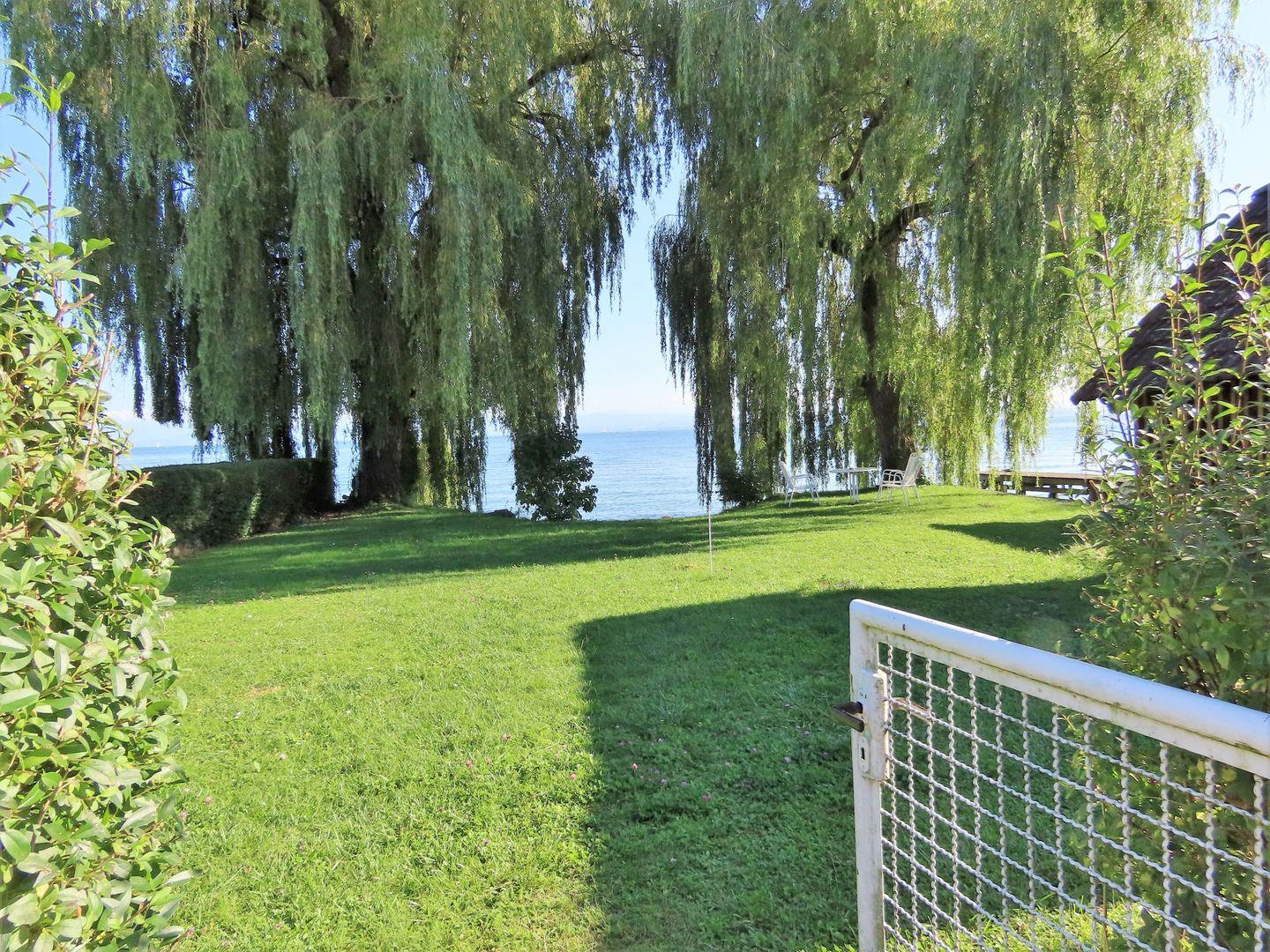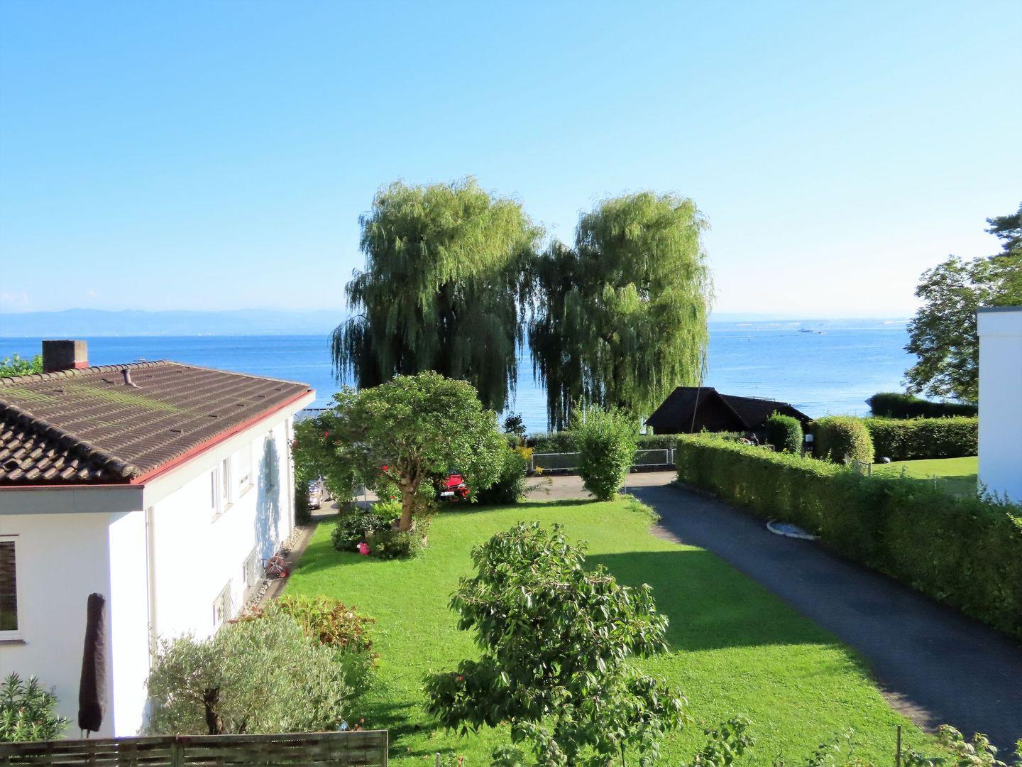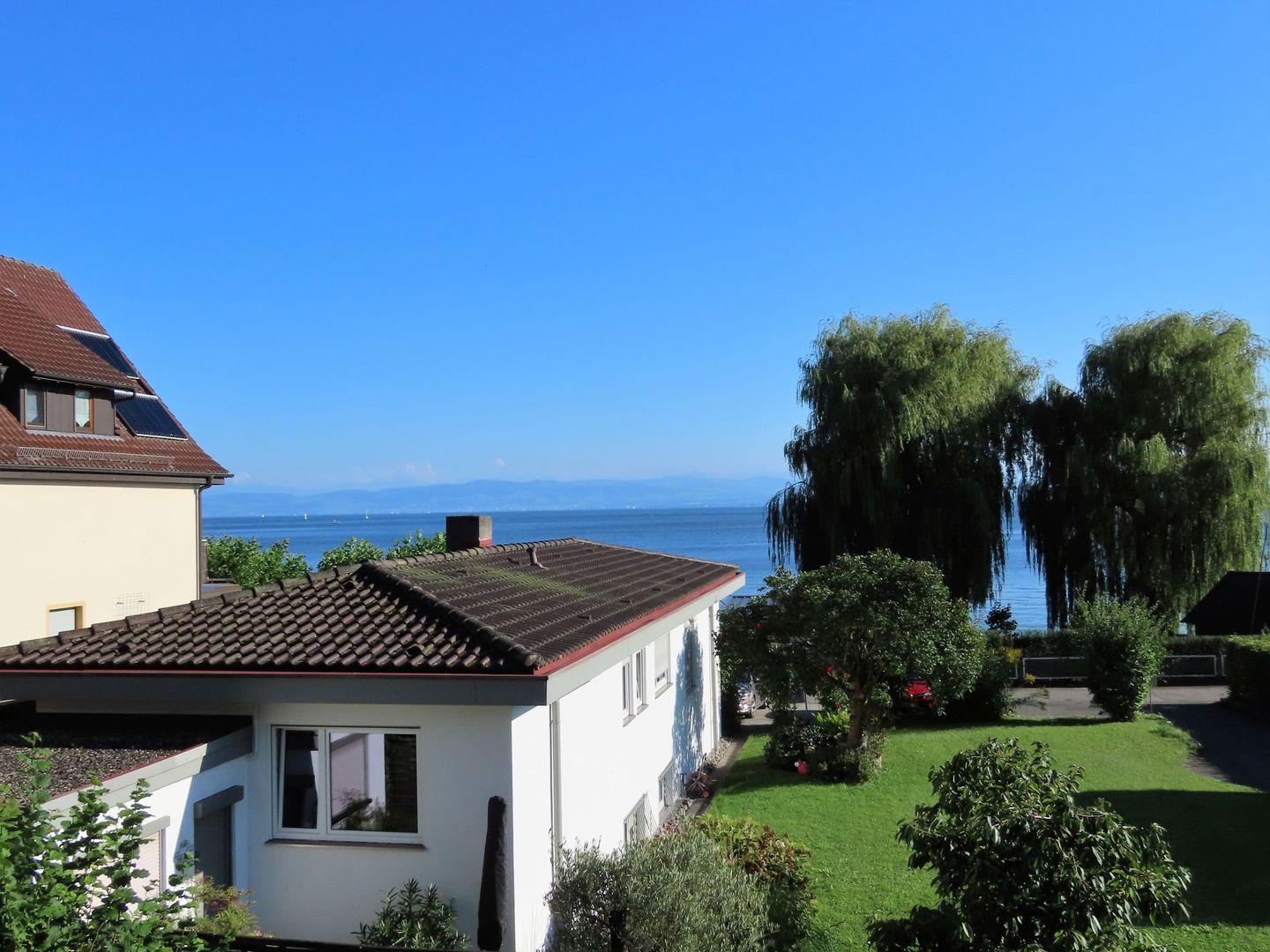Ruhesuchende und Wassersportler finden hier das ideale Urlaubs-Zuhause. Sehr ruhig gelegen genießen Sie den Blick auf den See und die Schweizer Alpen vom Balkon oder im Garten mit Naturstrand. Die großzügigen Räume bieten ausreichend Platz für Paare oder Familien für erholsame Ferientage. Der weiträumige Balkon lädt ein zum Frühstück in der Morgensonne. Gemeinsames Kochen macht dank der neu eingebauten Küche viel Spaß. Nur analoge TV-Sender. Die Ortsmitte mit den Restaurants und dem Schiffsanleger erreichen Sie in wenigen Gehminuten. Ein Supermarkt, ein Fischhändler, verschiedene Hofverkäufe und ein familienfreundliches Strand- und Hallenbad befinden sich ebenfalls im Ort.
