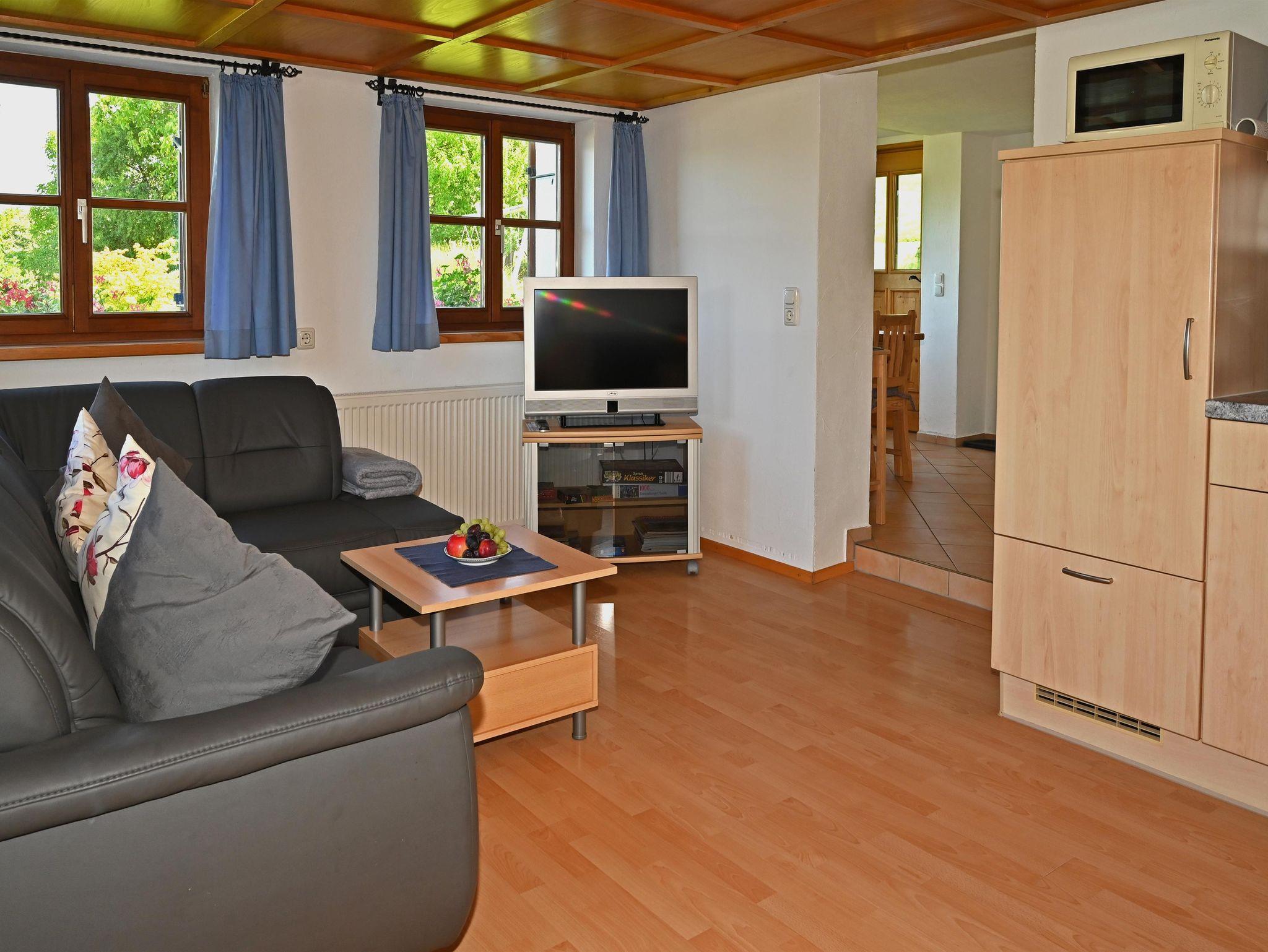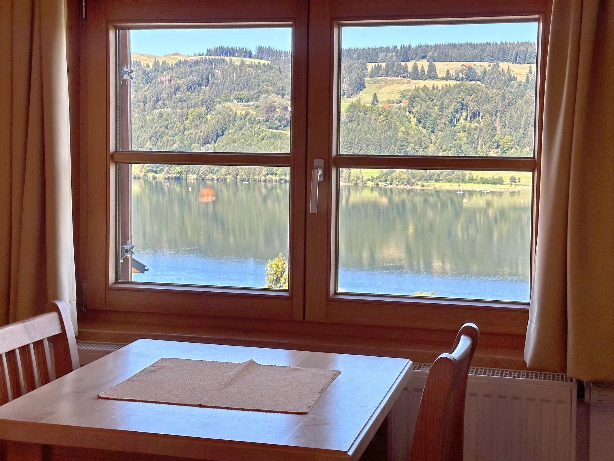 Unsere Seeblickwohnung hat insgesamt 3 Schlaf- und 2 Badezimmer. Geeignet für Personen mit Körpergröße bis 1,90 m weil renovierter Altbau.Traumhafter Panoramablick vom Erker der Essecke, wir sagen liebevoll unsere Loggia, hier können die Fenster aufgeschoben werden und Sie sitzen fast wie Draußen, ein adäquater Ersatz für den fehlenden Balkon. Diese Wohnung hat keinen eigenen Balkon, jedoch haben wir vor dem Haus eine schöne Terrasse unter dem Apfelbaum mit Liegen, Tischen und Stühlen für Sie. So hat noch niemand den Balkon richtig vermisst. Zwei Flachbild HD-Sat-Fernseher einmal mit DVD-Player, kostenfreies WLan und 4-Sterne-Komfort. Betten sind bezogen, Hand- Dusch- Geschirrtücher sind vorhanden und können nach Bedarf gewechselt werden.
