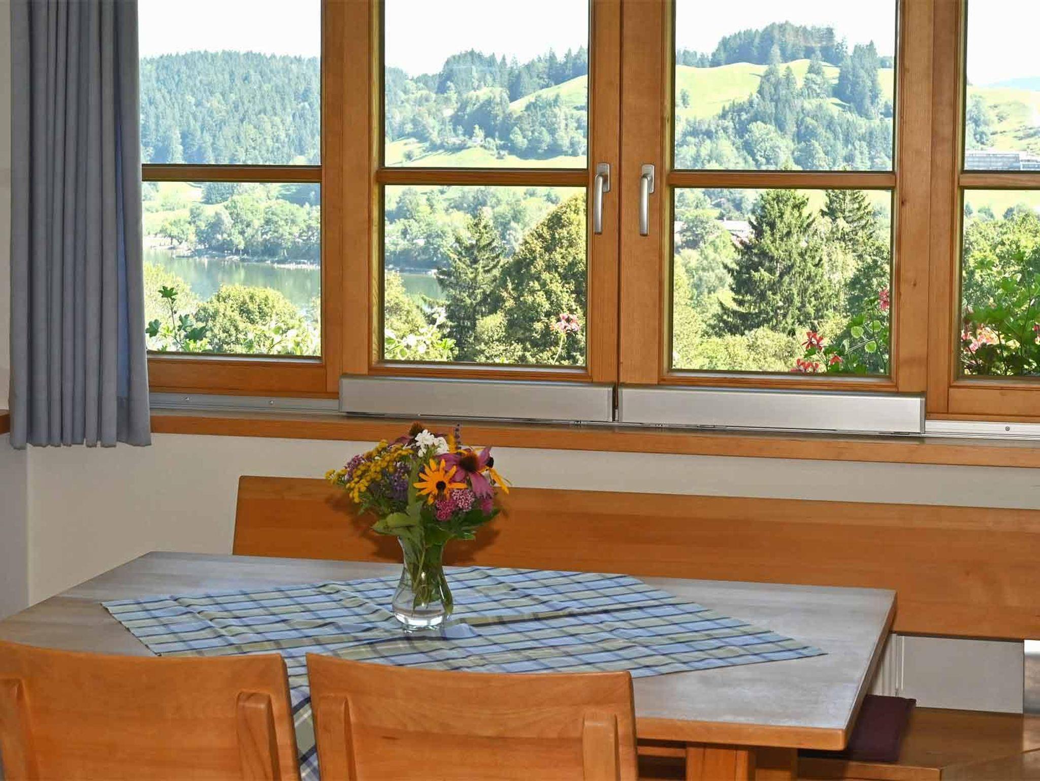 Suchen Sie Ruhe und Erholung abseits von Hektik und Straßenverkehr? Dann sind Sie bei uns richtig. Unser schönes Haus liegt am Hang über dem Alpsee in Alleinlage und doch nur 5 Autominuten von Immenstadt entfernt. Es erwarten Sie 4 gemütliche Ferienwohnungen für 2-7 Personen. Mit zum Teil 3 Schlafzimmern und zwei Badezimmern auch für die große Familie bestens geeignet. Genießen Sie die Panoramaaussicht über den Großen Alpsee von jeder Wohnung. Wenige Gehminuten zum privaten Badeplatz (auch für Hunde)und zum Angeln. Eine gute Stunde wandern Sie zur Alpsee-Bergwelt, Deutschlands längster Sommerrodelbahn. Wandern Sie direkt vom Haus im Naturpark Nagelfluh auch als Skitour oder Schneeschuhtour ein Erlebnis. Die große Panoramaterrasse und der Freisitz am Apfelbaum sind Logenplätze bei einer Regatta.