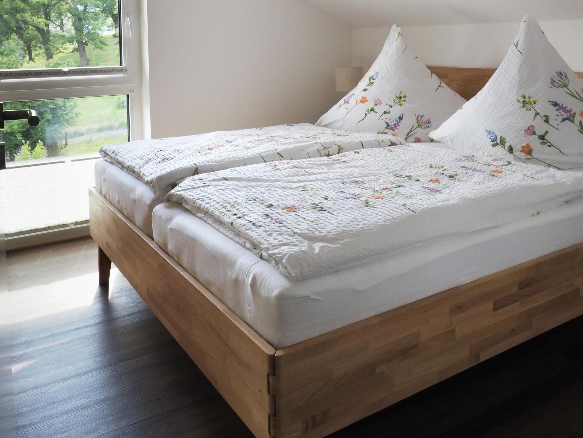 In unserer neu gebauten Ferienwohnung Steigbach finden Sie 2 Schlafzimmer mit jeweils einem Doppelbett, im Wohnzimmer eine Schlafcouch (1-2) Personen und einer vollausgestatteten Küche.