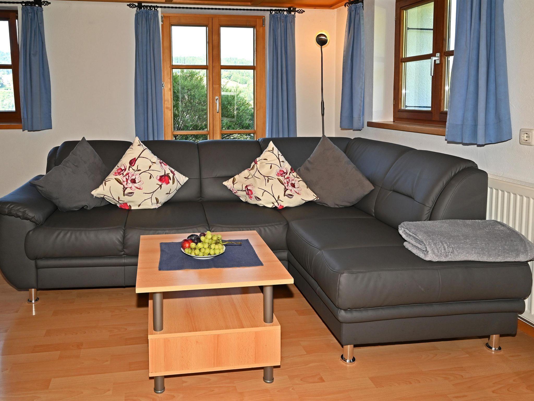 Die Neubauwohnung wurde nach ökologischen Gesichtspunkten errichtet, geölter Parkettboden, Kalkputz. Im Erdgeschoß gelegen und mit Seeblick sogar vom Sofa aus. Die neue Panoramaterrasse bietet einen unbeschreiblich schönen Blick auf den Großen Alpsee. Ein Schlafzimmer mit Doppelbett, wenn Sie getrennt schlafen möchten, können wir eine separate Schlafmöglichkeit im großen Flur einrichten. Wickeltisch im Badezimmer. Flachbild HD-Sat Fernseher, kostenfreies WLan, 4-Sterne-Komfort. Betten sind bezogen, Hand- Dusch- Geschirrtücher sind vorhanden und können nach Bedarf gewechselt werden. Direkter Zugang zu Liegewiese und überdachtem Stellplatz.