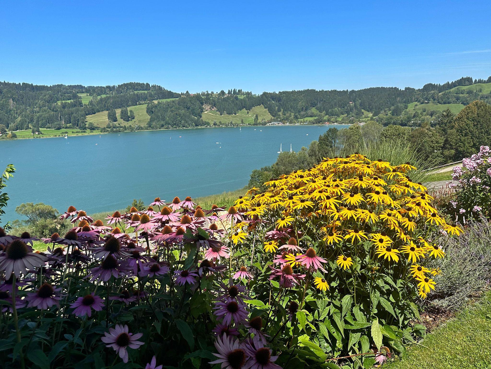 Suchen Sie Ruhe und Erholung abseits von Hektik und Straßenverkehr? Dann sind Sie bei uns richtig. Unser schönes Haus liegt am Hang über dem Alpsee in Alleinlage und doch nur 5 Autominuten von Immenstadt entfernt. Es erwarten Sie 4 gemütliche Ferienwohnungen für 2-7 Personen. Mit zum Teil 3 Schlafzimmern und zwei Badezimmern auch für die große Familie bestens geeignet. Genießen Sie die Panoramaaussicht über den Großen Alpsee von jeder Wohnung. Wenige Gehminuten zum privaten Badeplatz (auch für Hunde)und zum Angeln. Eine gute Stunde wandern Sie zur Alpsee-Bergwelt, Deutschlands längster Sommerrodelbahn. Wandern Sie direkt vom Haus im Naturpark Nagelfluh auch als Skitour oder Schneeschuhtour ein Erlebnis. Die große Panoramaterrasse und der Freisitz am Apfelbaum sind Logenplätze bei einer Regatta.