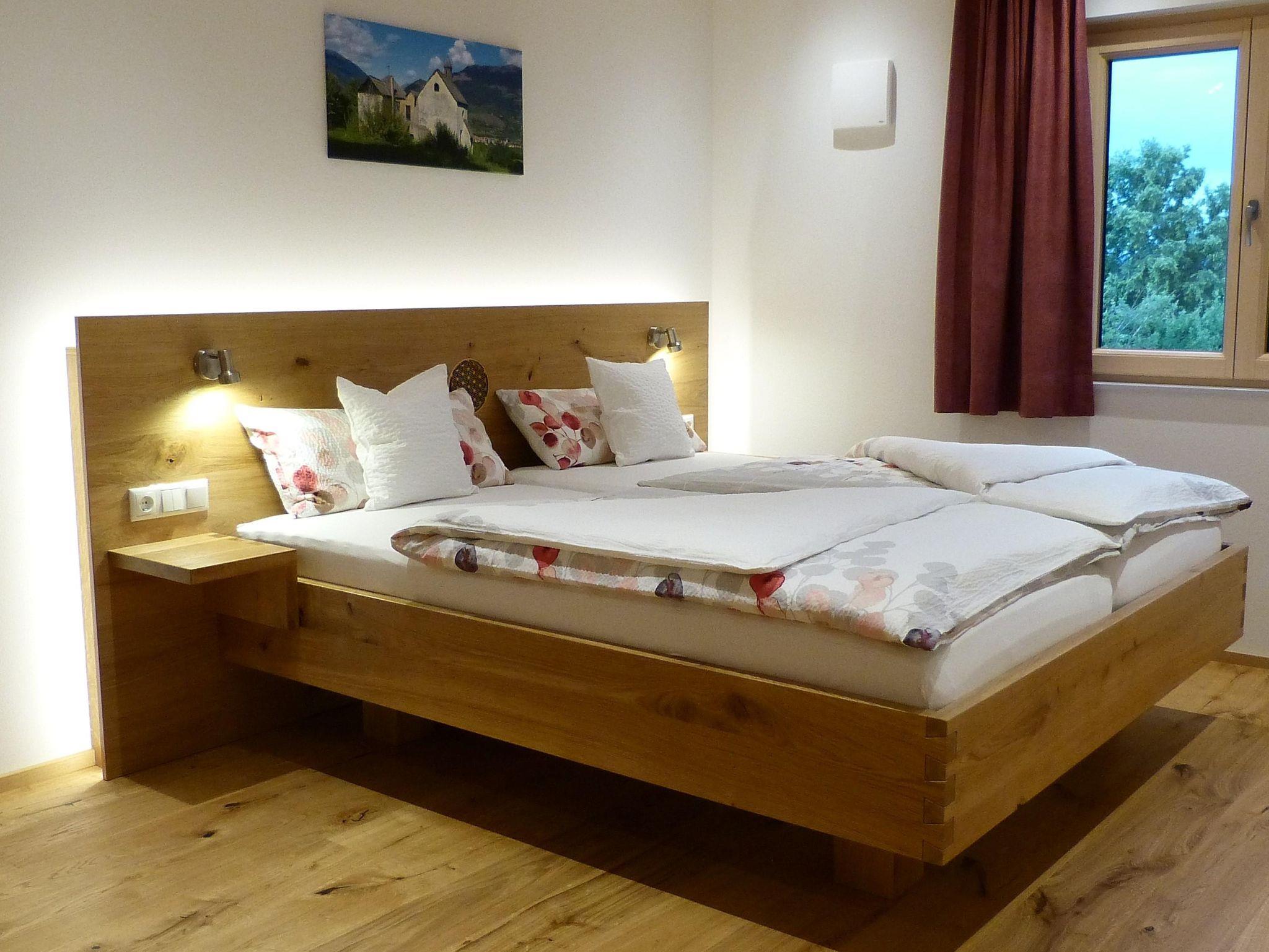 • zwei Schlafzimmer mit rustikalen Betten in naturbelassener Eiche