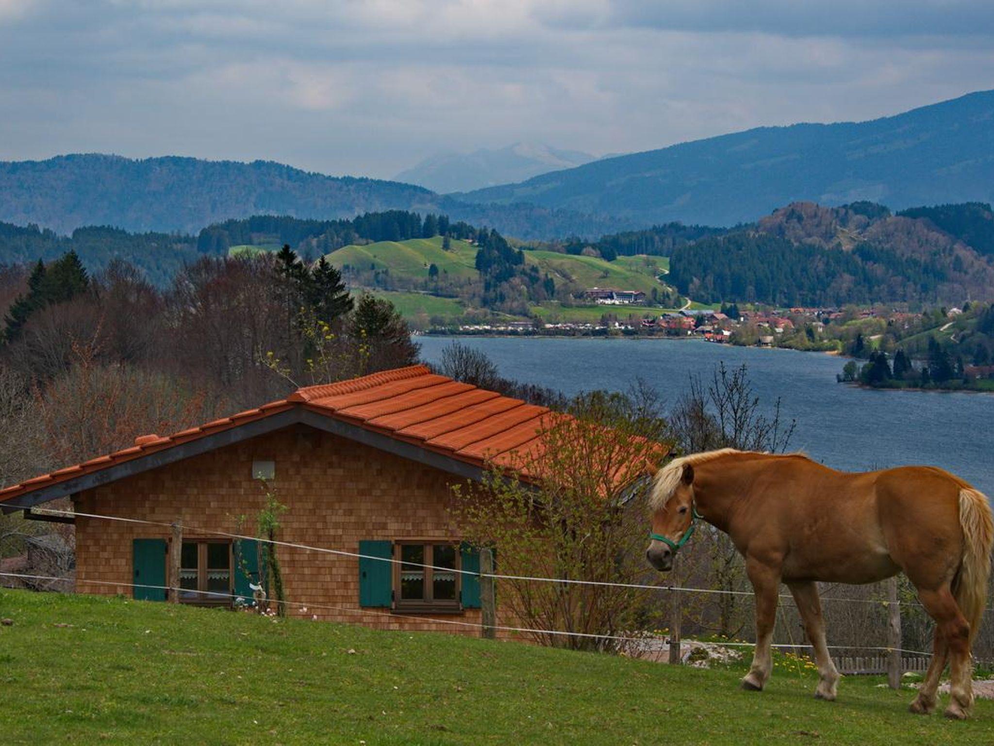 Unser Holzheisle liegt oberhalb vom großen Alpsee mit einem freien Blick auf den See und die umliegenden Berge. Wanderungen und Radtouren sind direkt vom Haus aus möglich. Einkaufsmöglichkeiten sind ca. 10 Minuten mit dem PKW entfernt. Zur Alpseebergwelt mit Alpseecoaster sind es nur ca. 3 km.