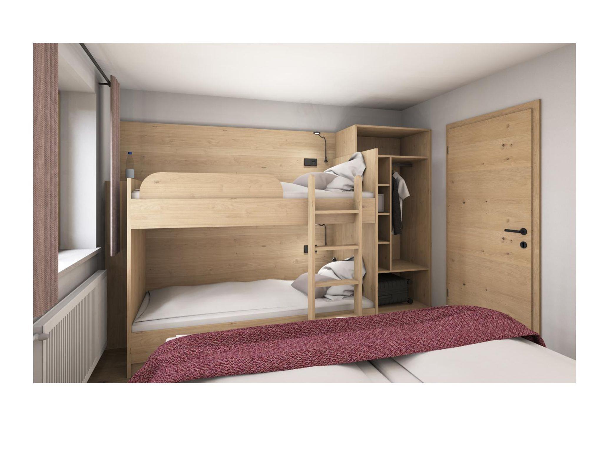 Küchenzeile m. Spülmaschine und Backofen, 1 Schlafzimmer m. Doppel- und Stockbett, DU und WC separat,