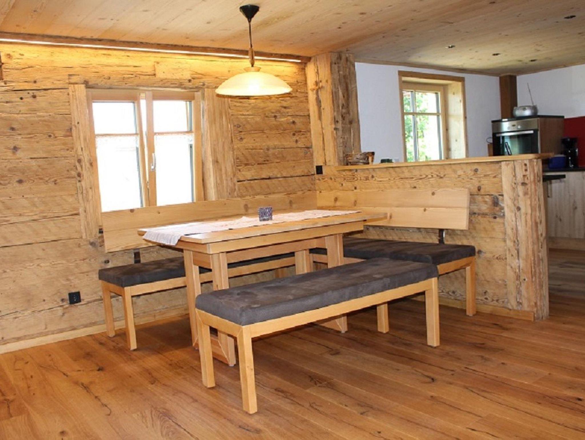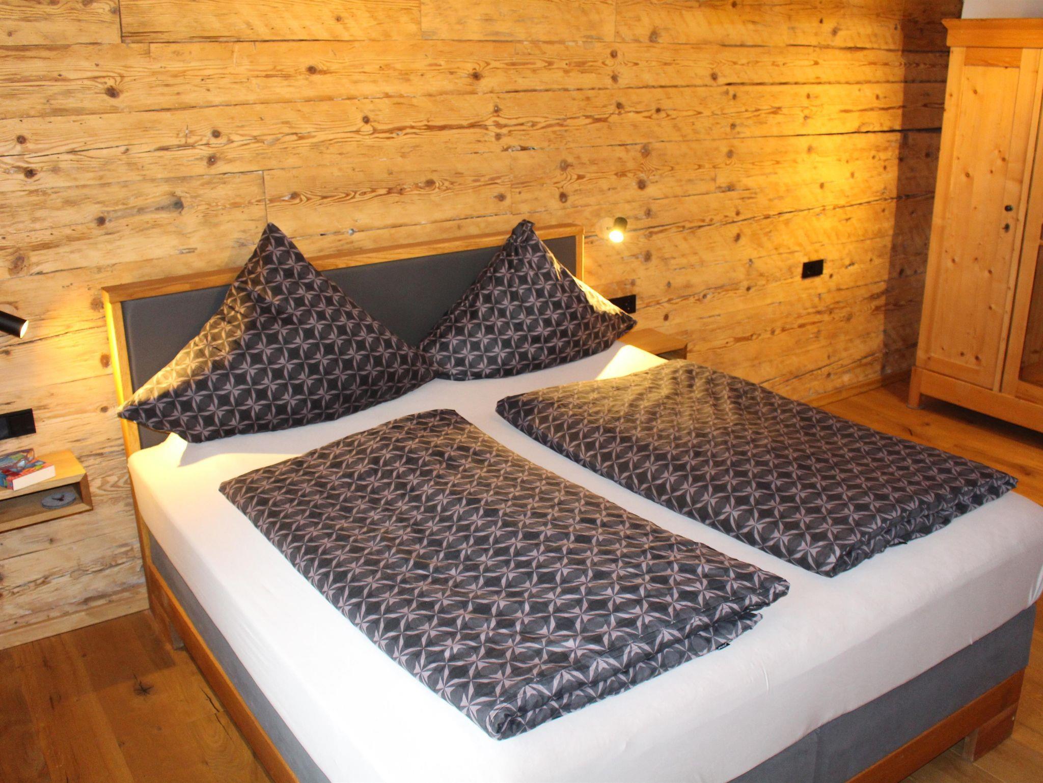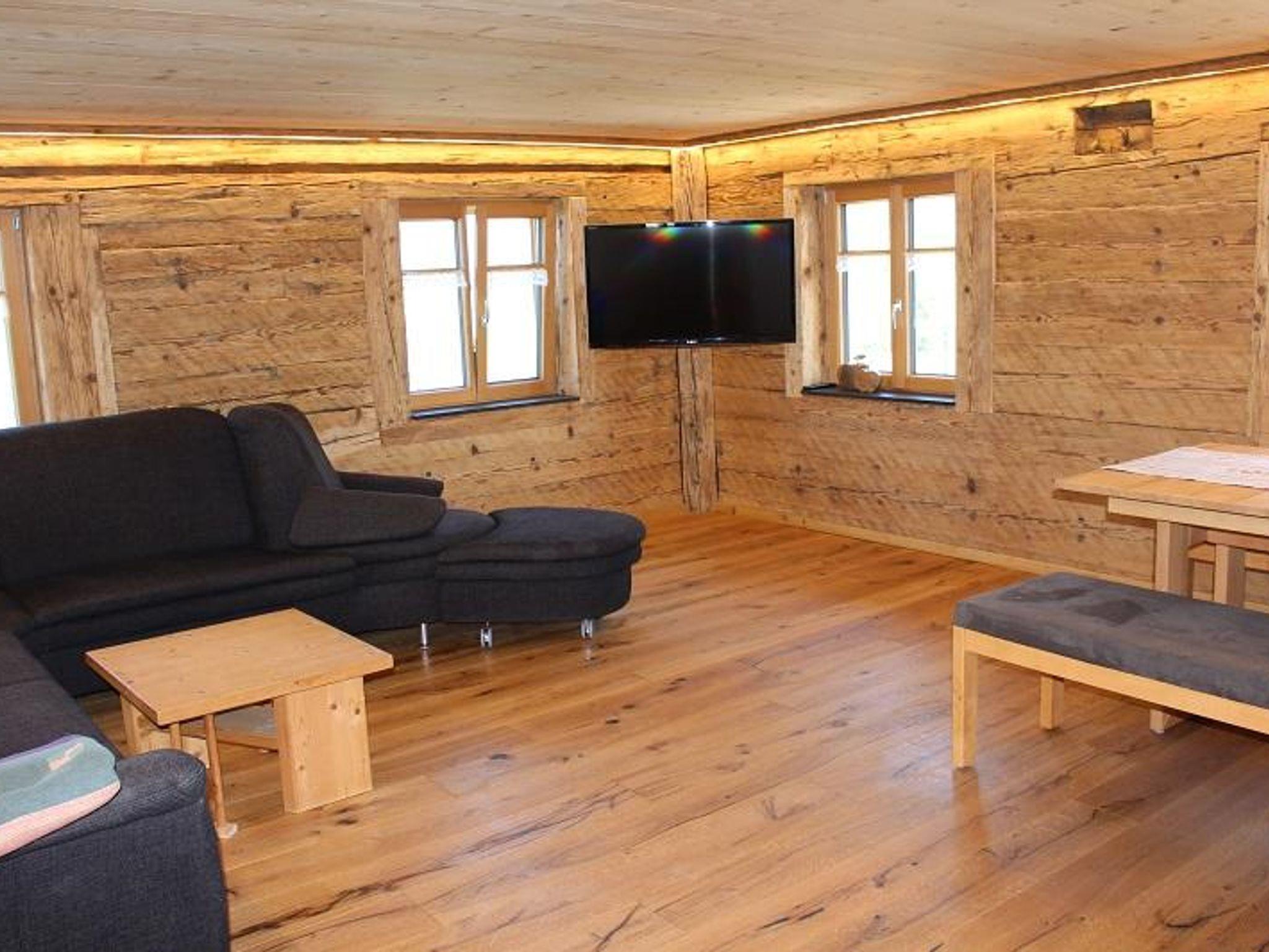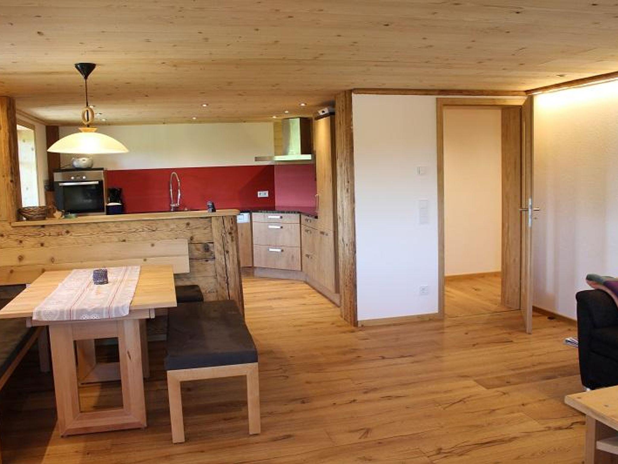 Ferienwohnung I (bis 5 Personen) enthält 2 Schlafzimmer (mit 2 Doppelbetten und 1 Einzelbett) und 2 Fernseher, moderne Wohnküche mit Couchgarnitur, 2 Bäder mit WC und Dusche und einen Südbalkon mit herrlicher Aussicht auf den Grünten.