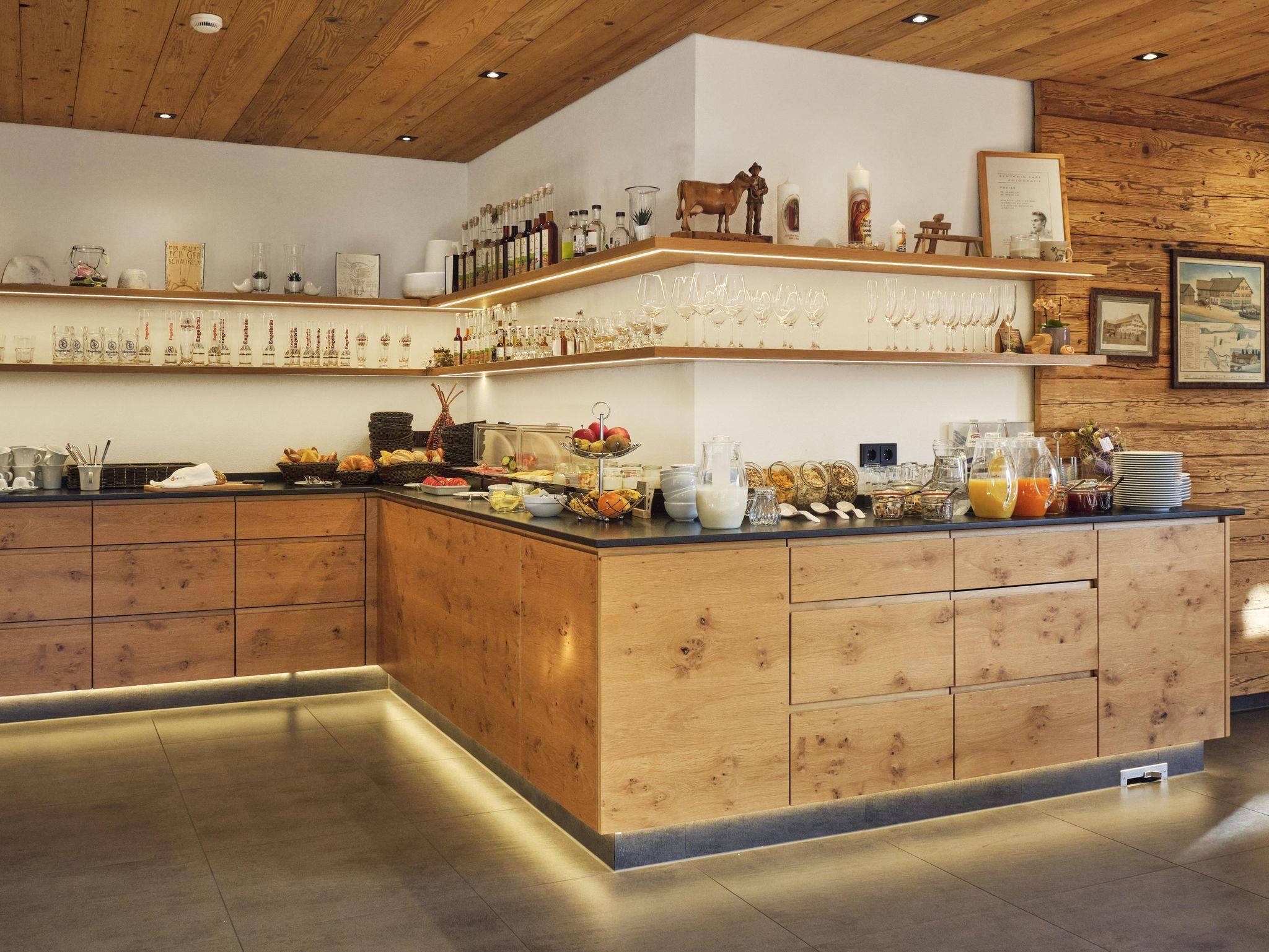 Unser Frühstücksbuffet besticht durch regionale Köstlichkeiten und lässt Sie gestärkt in den Tag starten. Für die Gäste in unseren Doppelzimmern ist dieses bereits im Übernachtspreis enthalten. Die Gäste unserer Ferienwohnungen können das Frühstücksbuffet gegen Aufpreis hinzubuchen.