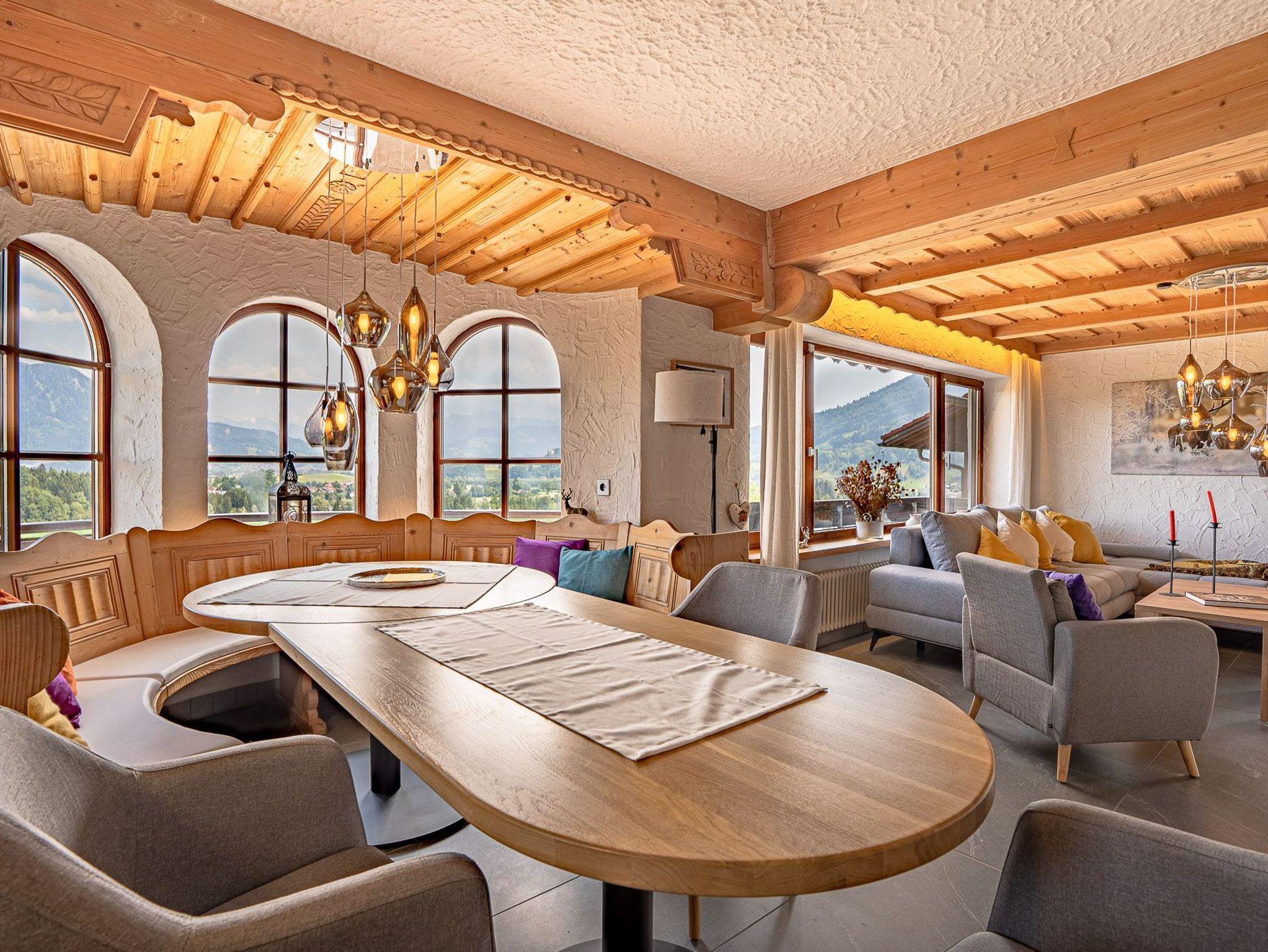 Diese liebevoll und hochwertig eingerichtete Wohnung bietet vom Balkon, einen fantastischen Blick ins Allgäu.