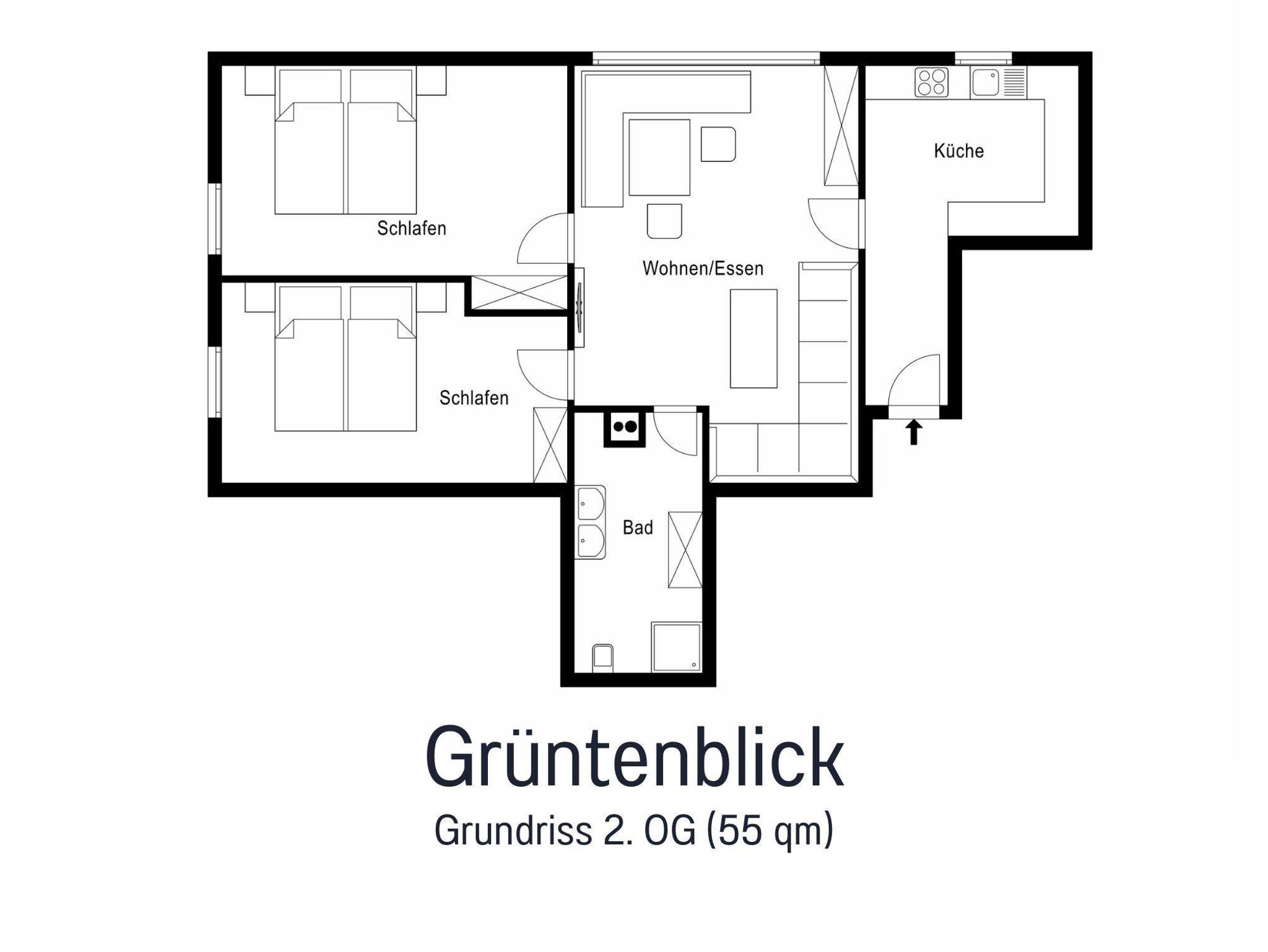 Unsere Ferienwohnung Grüntenblick liegt im 2. Obergeschoss und ist 55?m² groß – ideal für zwei bis vier Personen, die Gemütlichkeit und einen traumhaften Ausblick schätzen. Wie der Name schon verspricht, genießt Ihr von hier aus einen herrlichen Blick auf den Grünten – das „Wächtergebirge des Allgäus“.