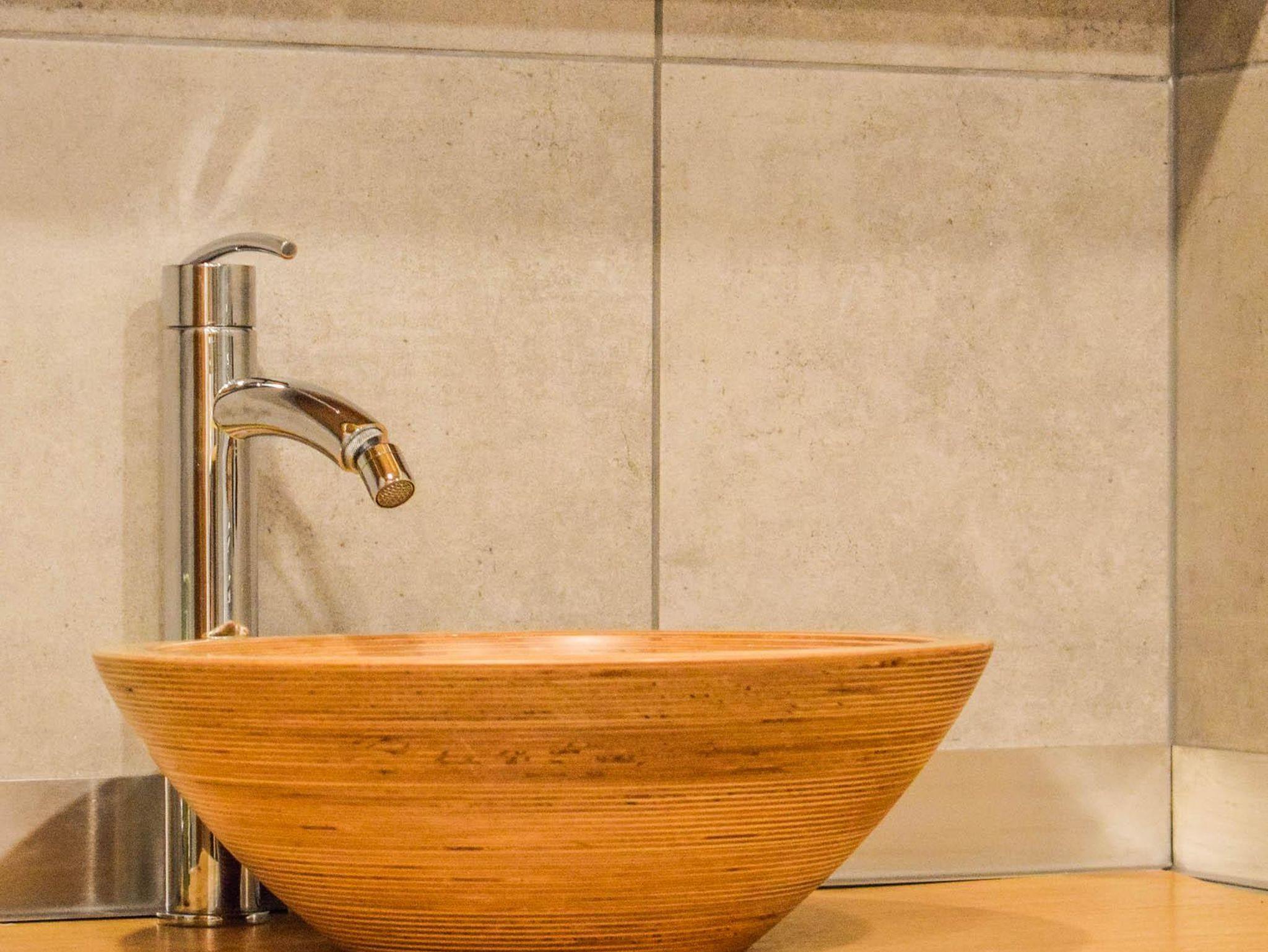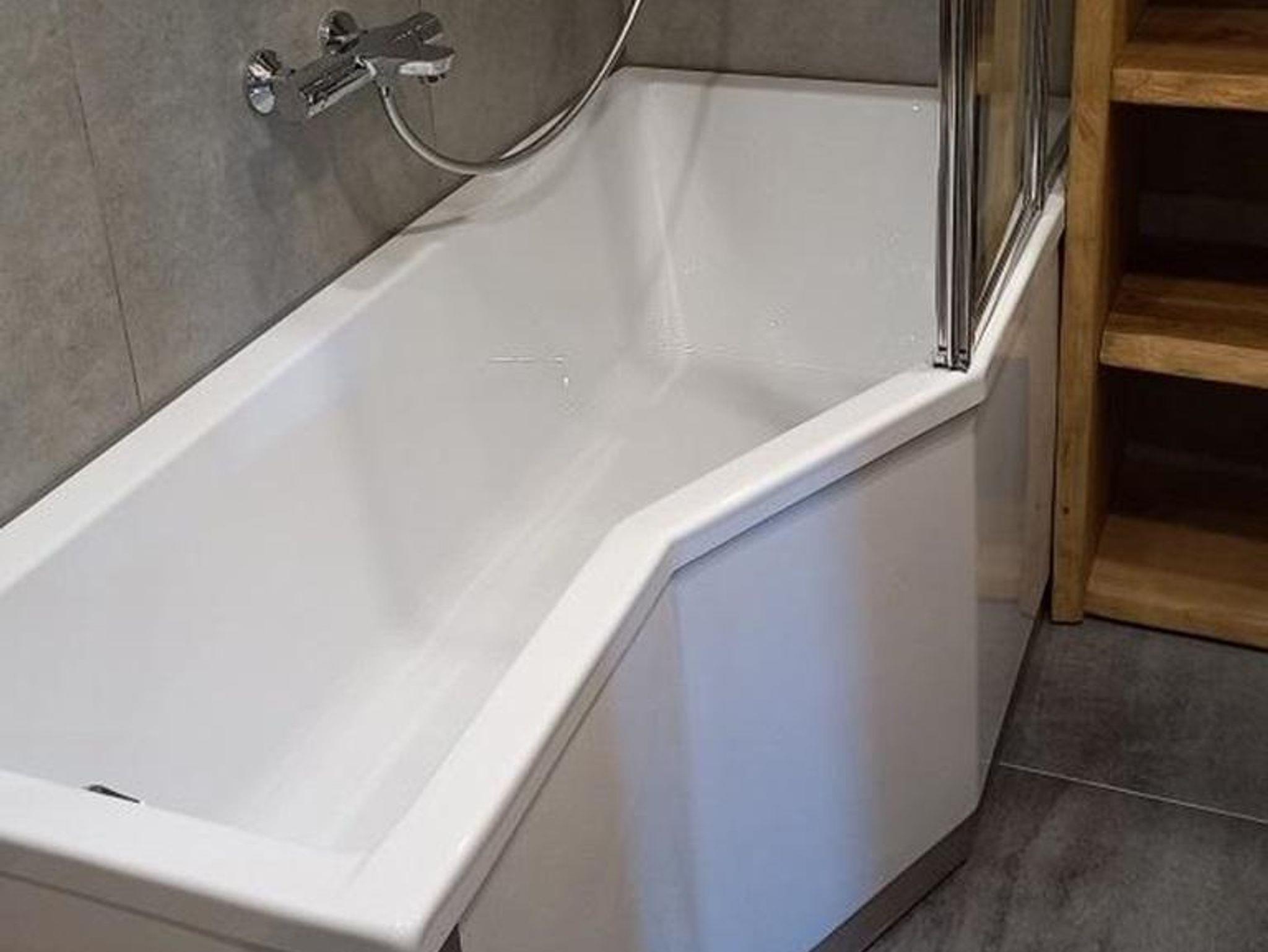 Das Bad mit Wanne, einem Waschbecken und Toilette sind neu renoviert.
