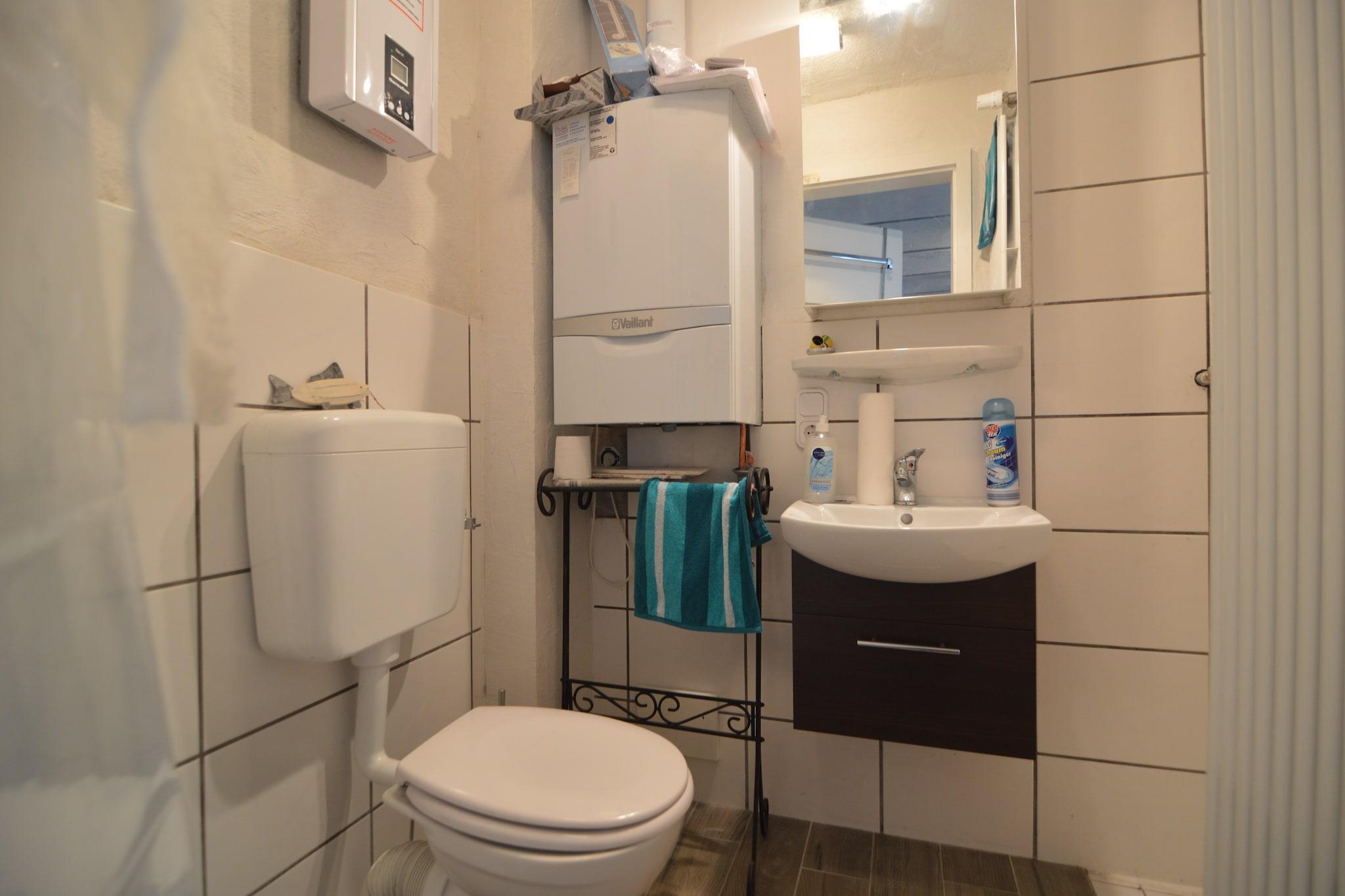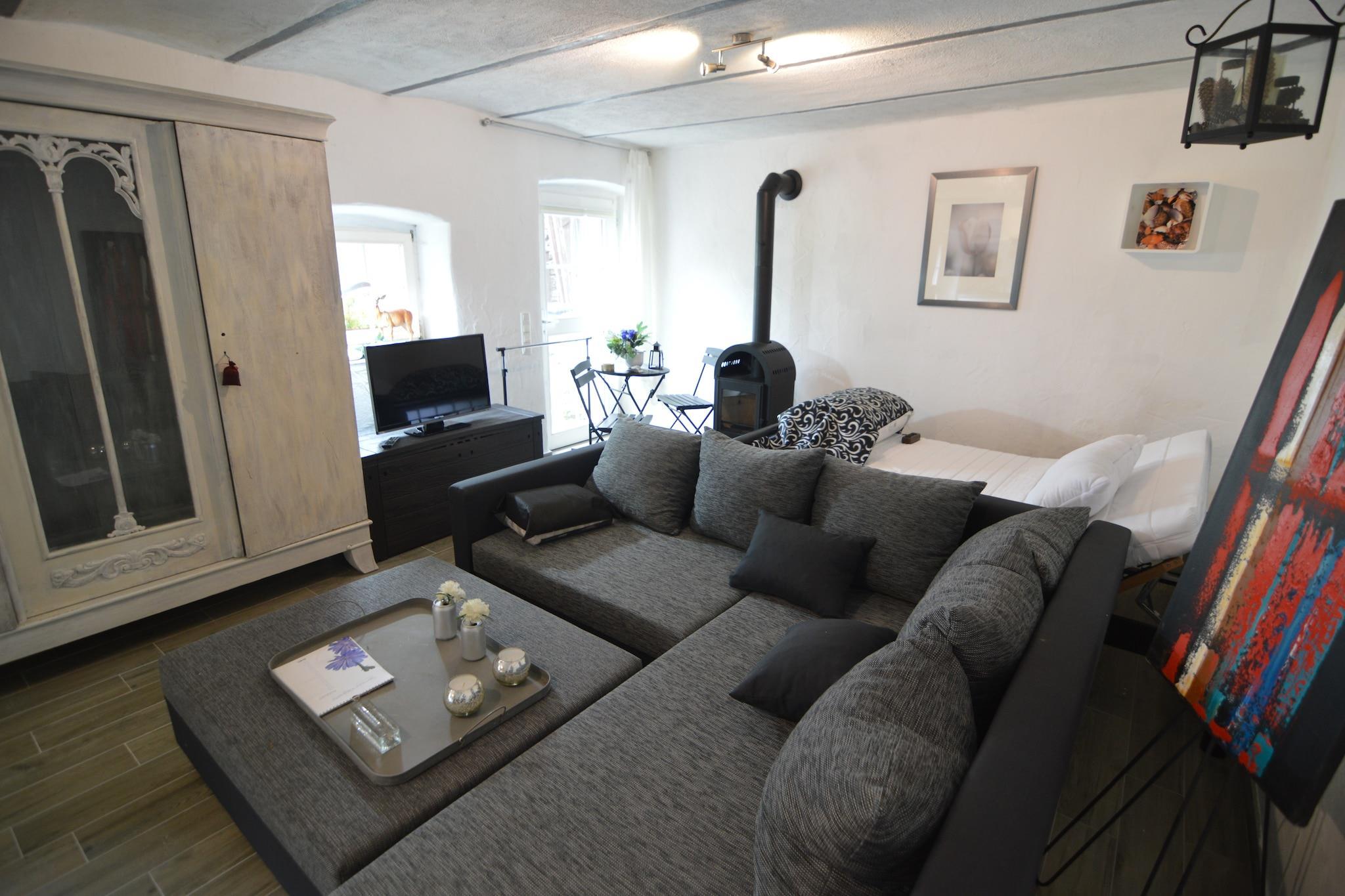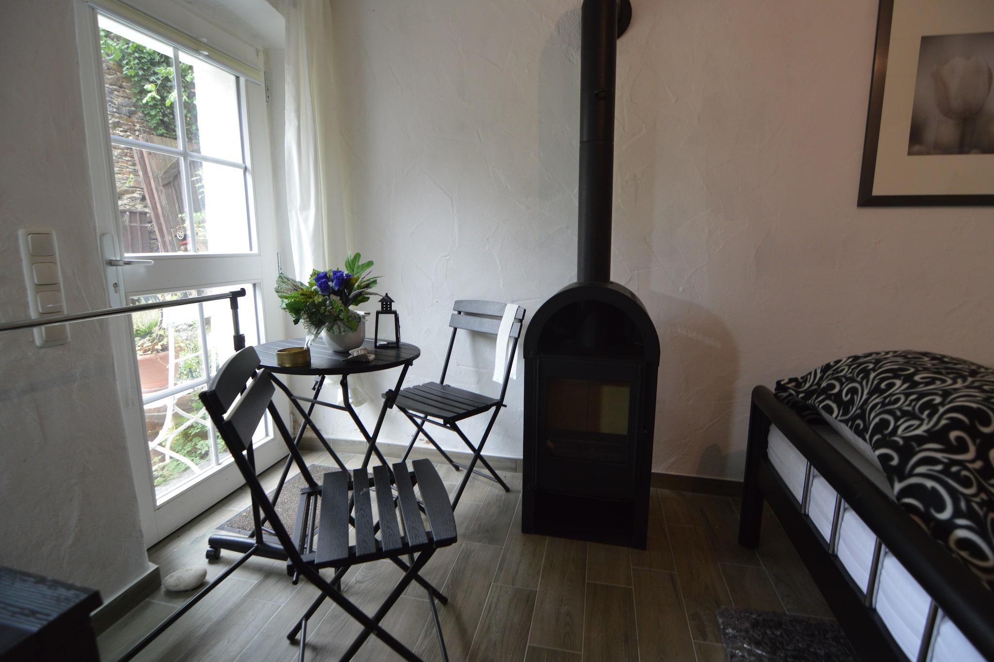 Denne sjarmerende 1-roms leiligheten i Immerath tilbyr et fredelig tilfluktssted for to, perfekt for par som søker natur og komfort. Planløsningen i første etasje inkluderer en koselig stue/spisestue med vedovn, satellitt-TV og et åpent kjøkken utstyrt for hjemmelaget mat. En privat terrasse med spisemøbler inviterer til avslappende utendørsmåltider, mens innendørs oppvarming sørger for komfort hele året. Leiligheten er omgitt av den naturskjønne vulkanen Eifel-regionen, kun 400 meter fra sentrum av landsbyen og 5 km fra butikker og restauranter. Naturelskere kan utforske nærliggende tur- og sykkelstier, besøke rolige Weinfelder Maar eller slappe av ved Vulkaneifel Thermal Spa. Attraksjoner som Calmont Klettersteig og Wild- & Erlebnispark Daun byr på eventyr og familiemoro. Parkering er tilgjengelig på stedet, og de rolige omgivelsene gjør det enkelt å koble fra og lade opp. Enten du rusler gjennom vulkanske landskap eller nyter en rolig kveld ved vedovnen, blander dette romantiske gjemmestedet sjarm, komfort og oppdagelse.