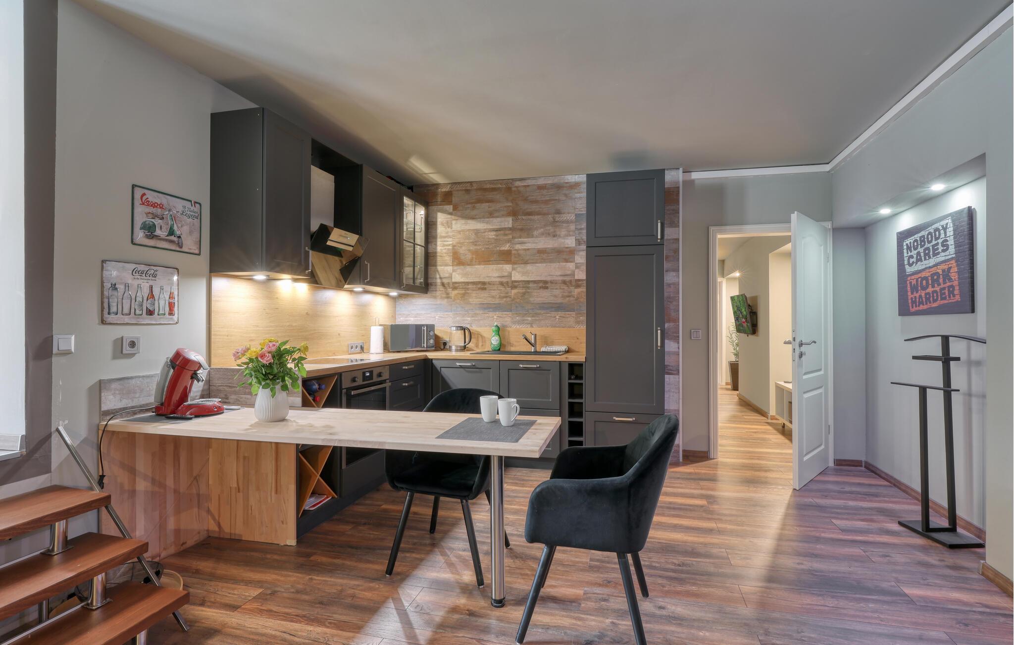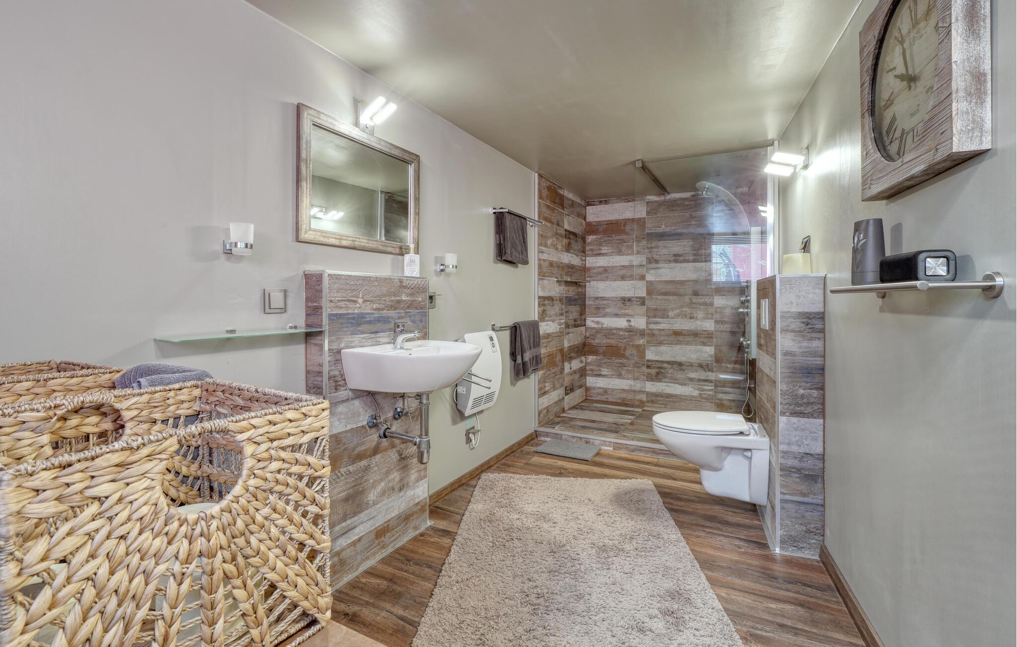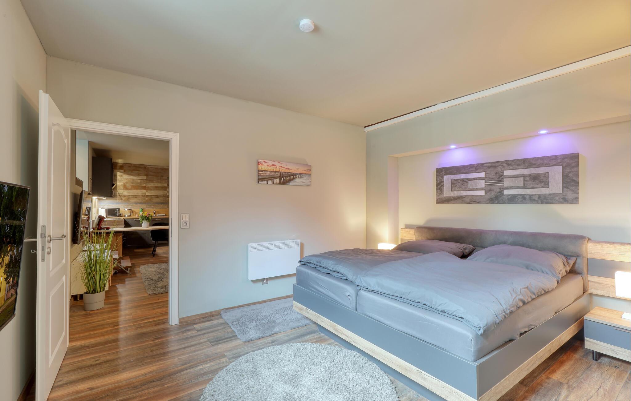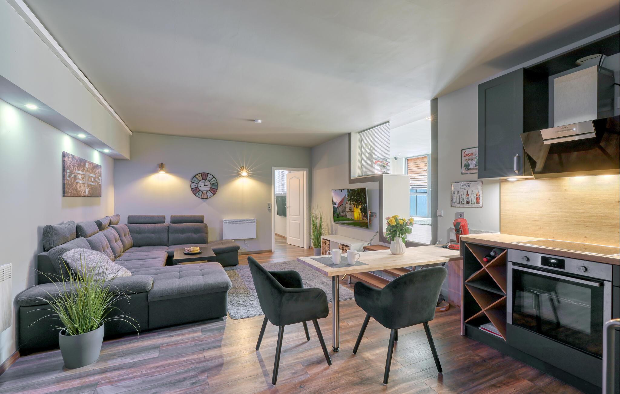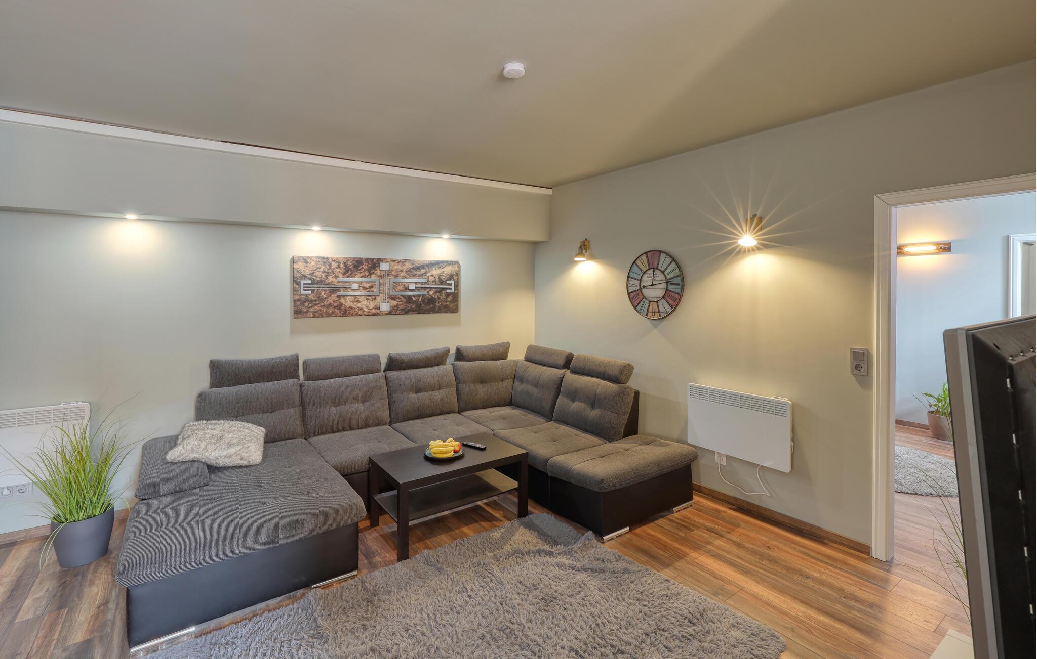 Sammen med venner, den lille familien eller som par kan du tilbringe en uforglemmelig ferie i denne fanatiske ferieleiligheten. Komfort, møbler av høy kvalitet og eksepsjonelt gode fasiliteter gir deg den maksimale avslappingseffekten du ønsker deg av avbrekket fra hverdagen. I tillegg til den daglige ferierutinen med matlaging, mat og lek, kan du også gjennomføre ditt daglige treningsprogram her, ettersom utstyret innbyr til trening og deretter en badstueøkt i den infrarøde badstuen. Om kvelden kan du slappe av i hjemmekinoen eller slappe av på terrassen om sommeren, grille og prate i timevis.