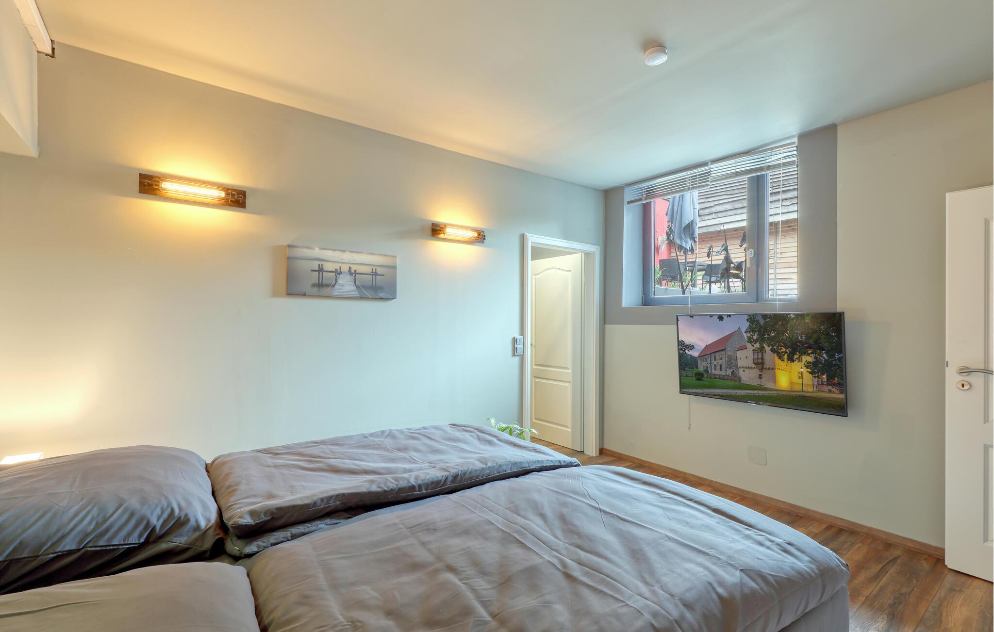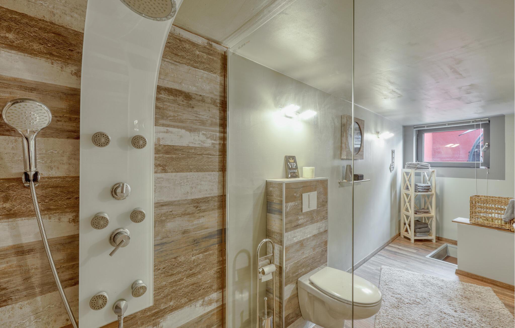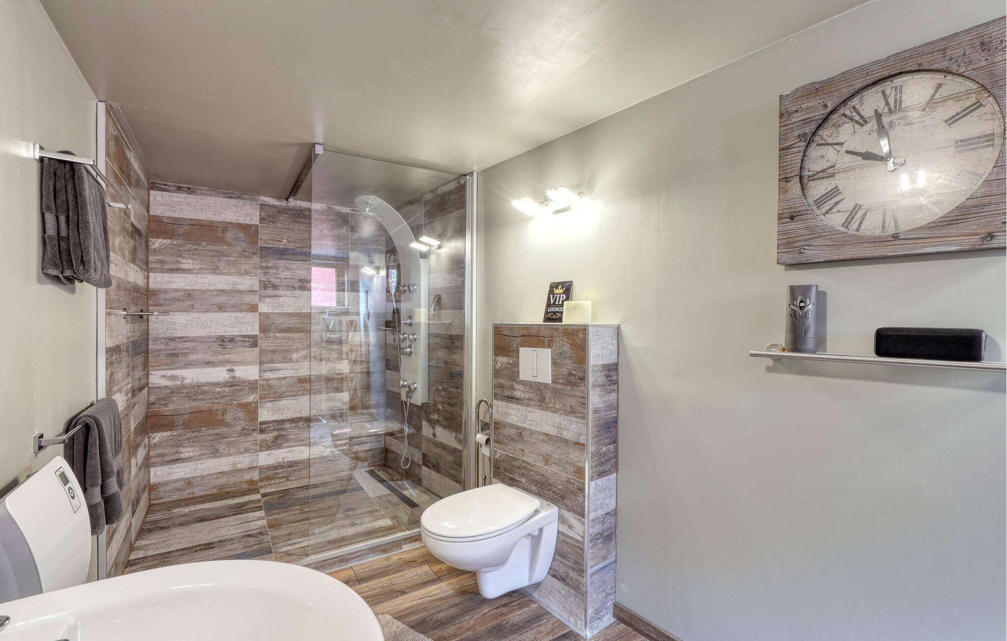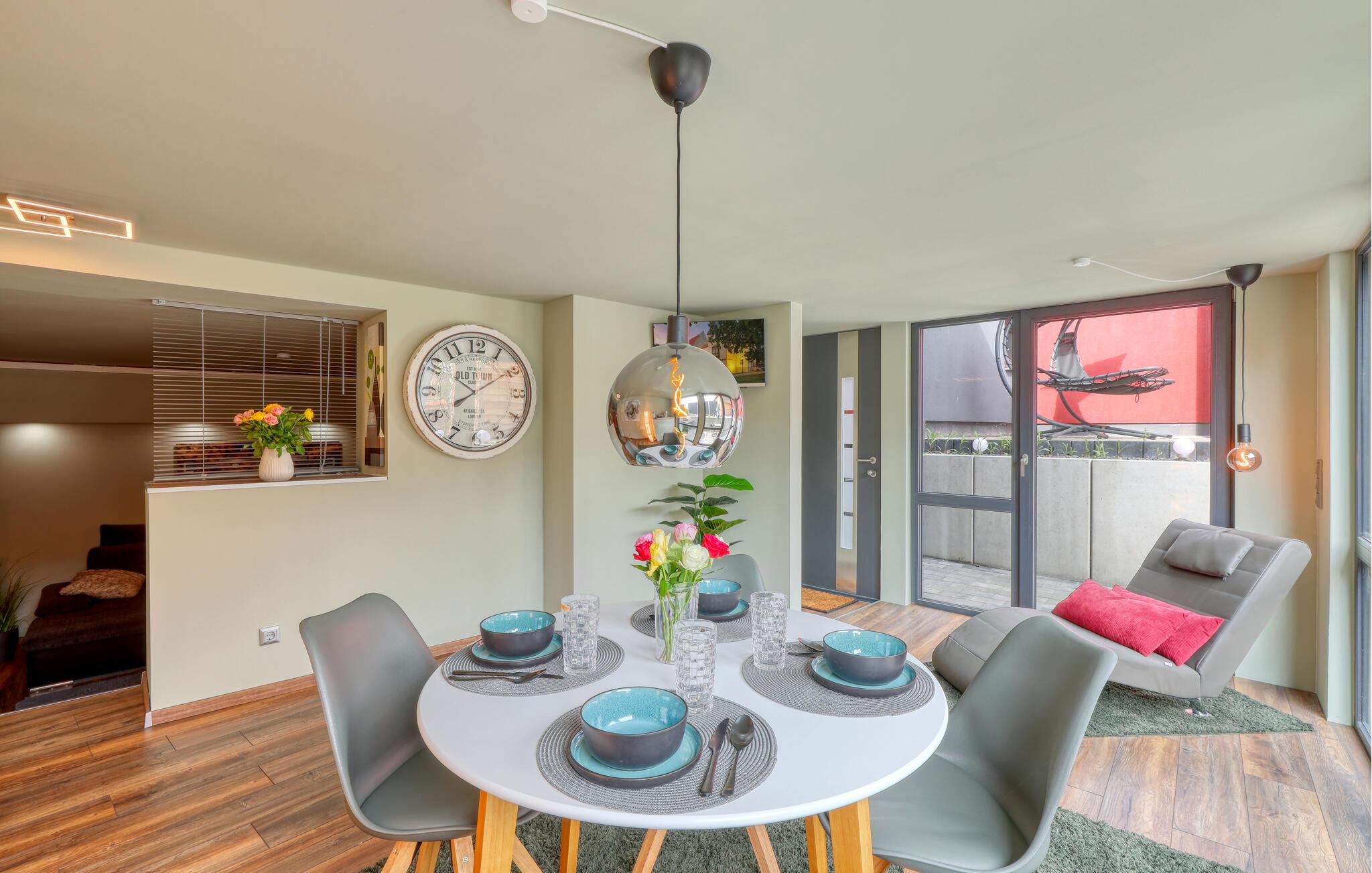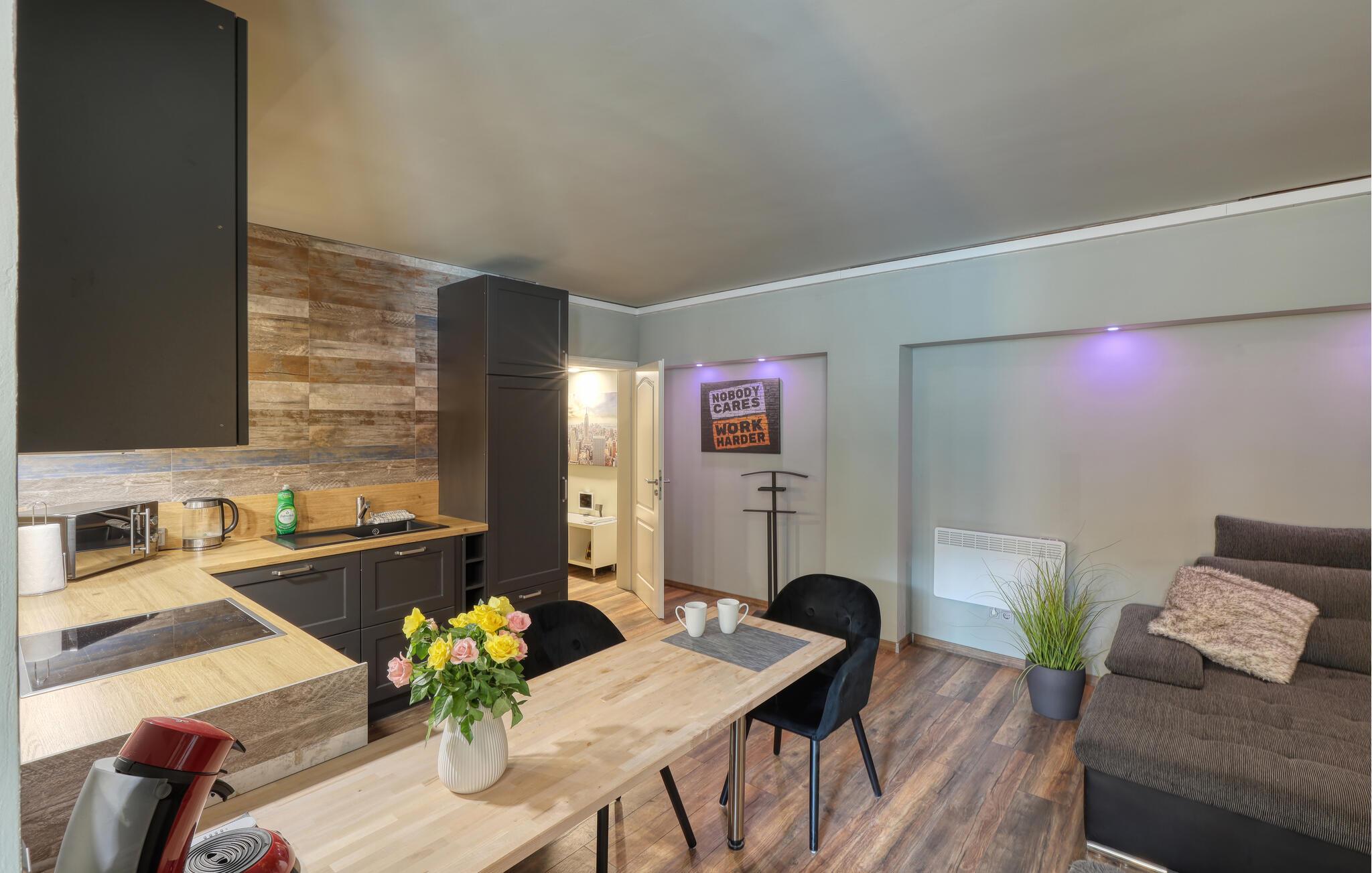 Sammen med venner, den lille familien eller som par kan du tilbringe en uforglemmelig ferie i denne fanatiske ferieleiligheten. Komfort, møbler av høy kvalitet og eksepsjonelt gode fasiliteter gir deg den maksimale avslappingseffekten du ønsker deg av avbrekket fra hverdagen. I tillegg til den daglige ferierutinen med matlaging, mat og lek, kan du også gjennomføre ditt daglige treningsprogram her, ettersom utstyret innbyr til trening og deretter en badstueøkt i den infrarøde badstuen. Om kvelden kan du slappe av i hjemmekinoen eller slappe av på terrassen om sommeren, grille og prate i timevis.