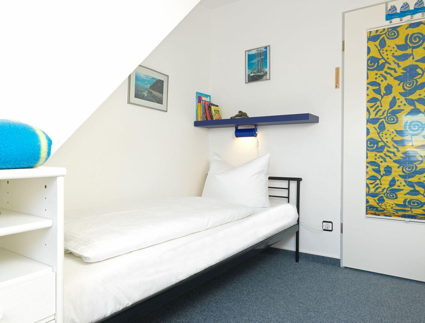 In der oberen Etage befinden sich zwei Schlafzimmer, eines mit Doppelbett und 2.TV und das zweite mit zwei Einzelbetten.