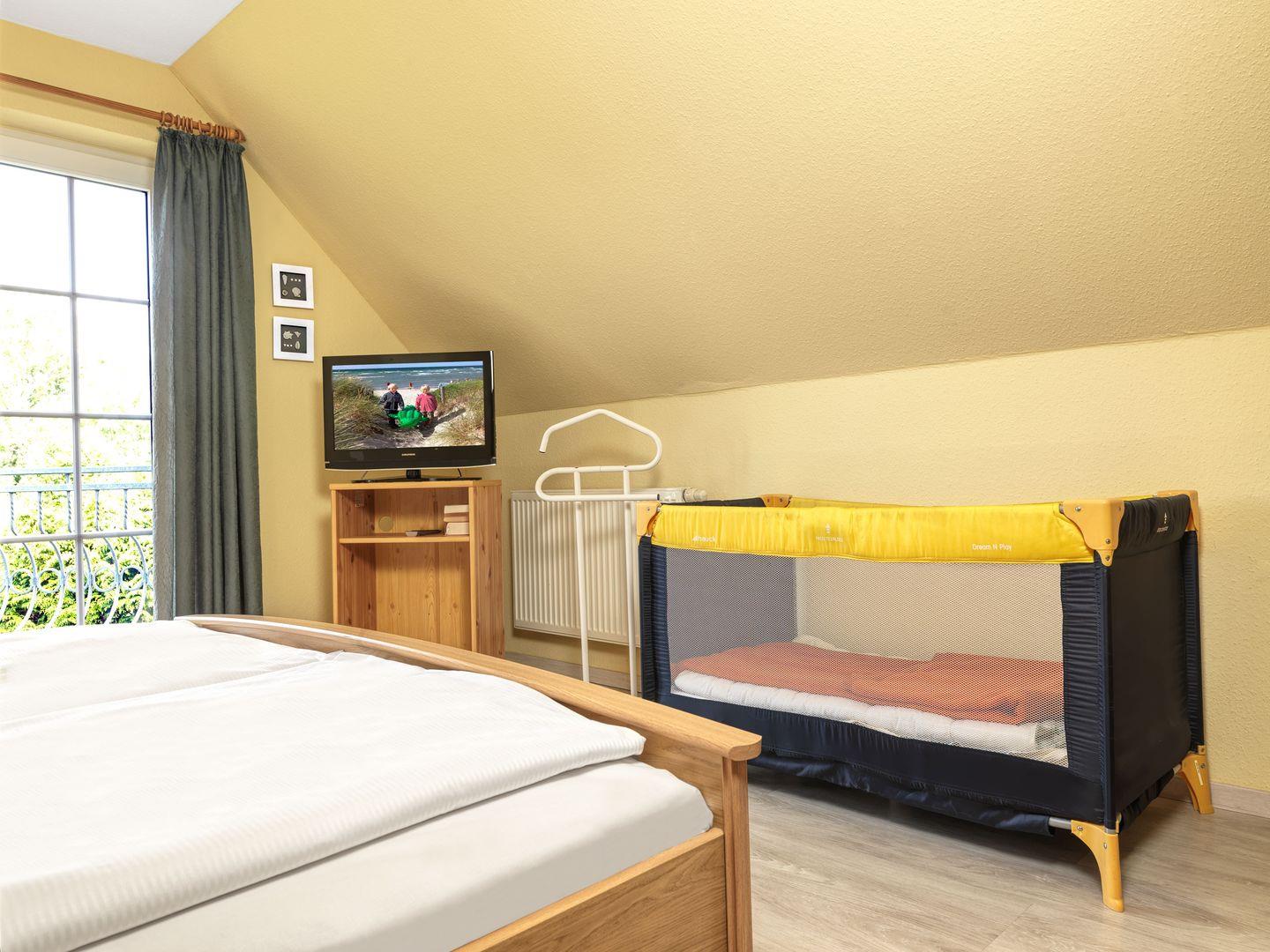 Kinderreisebett und Hochstuhl erwarten die kleinen Gäste.