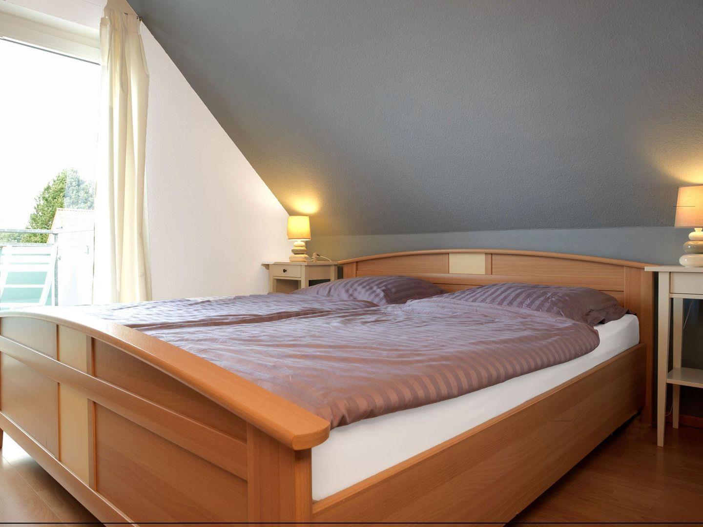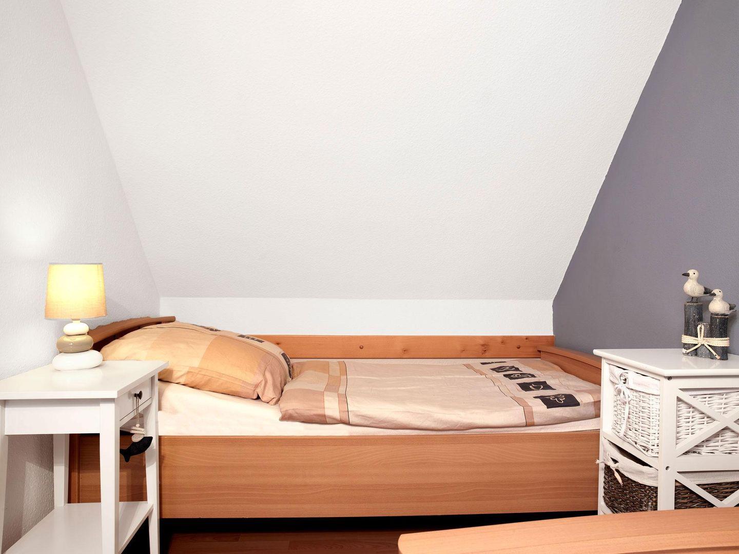 Ein gemütliches Schlafzimmer mit Doppelbett und ein Schlafzimmer mit zwei Einzelbetten erwarten bis zu 4 Personen im OG.