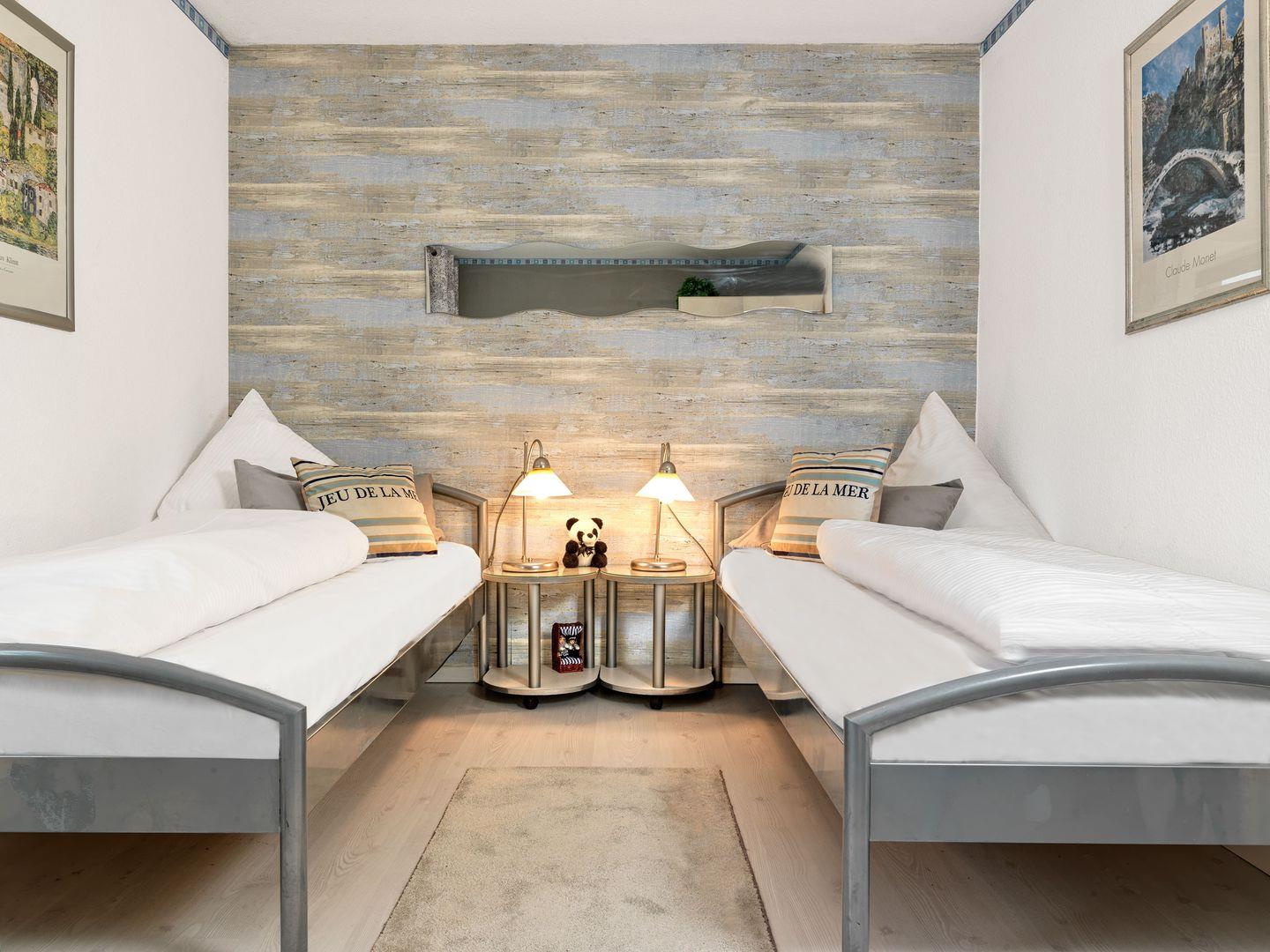 Beide Schlafzimmer verfügen über zwei Einzelbetten und einen Kleiderschrank.