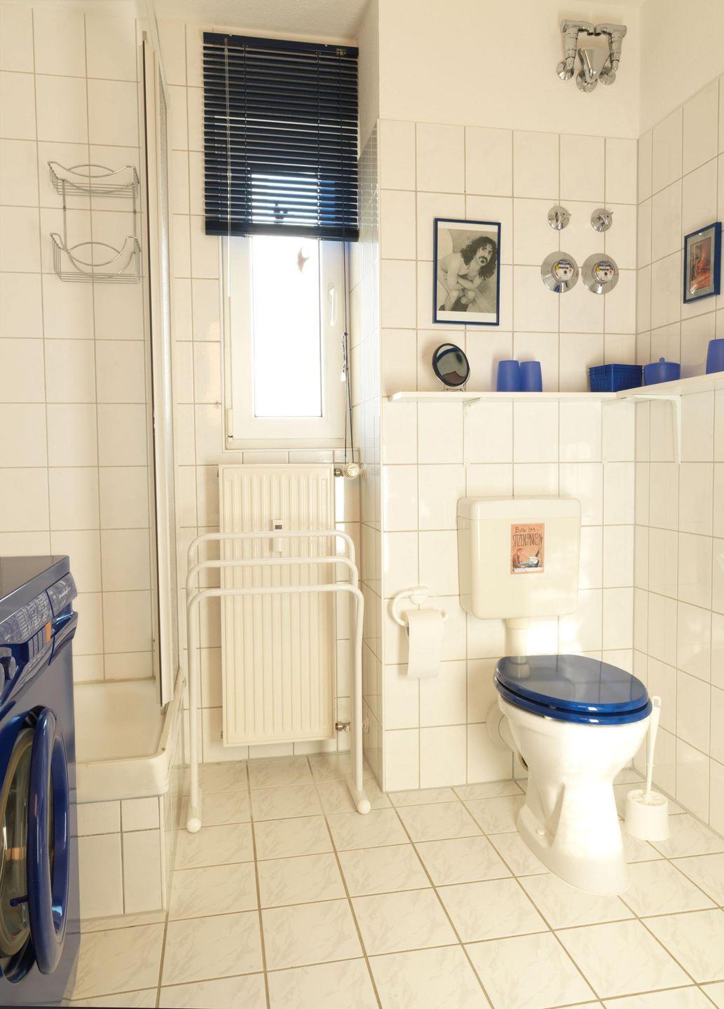 Das Bad ist mit Dusche/WC und Waschmaschine ausgestattet.