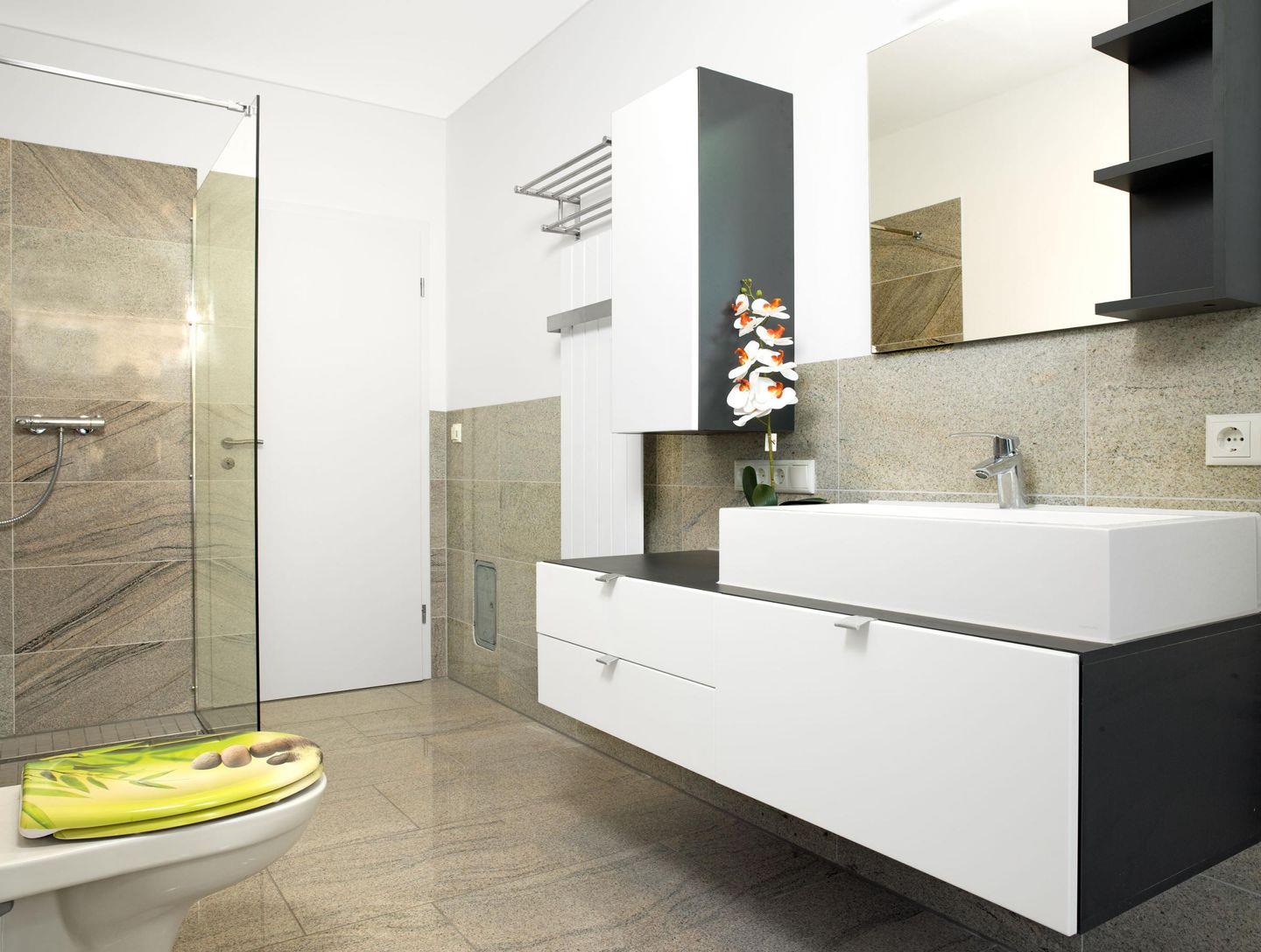 Vor der Eingangstür befindet sich ein Fußboden aus Granit, dort besteht Rutschgefahr bei Nässe.