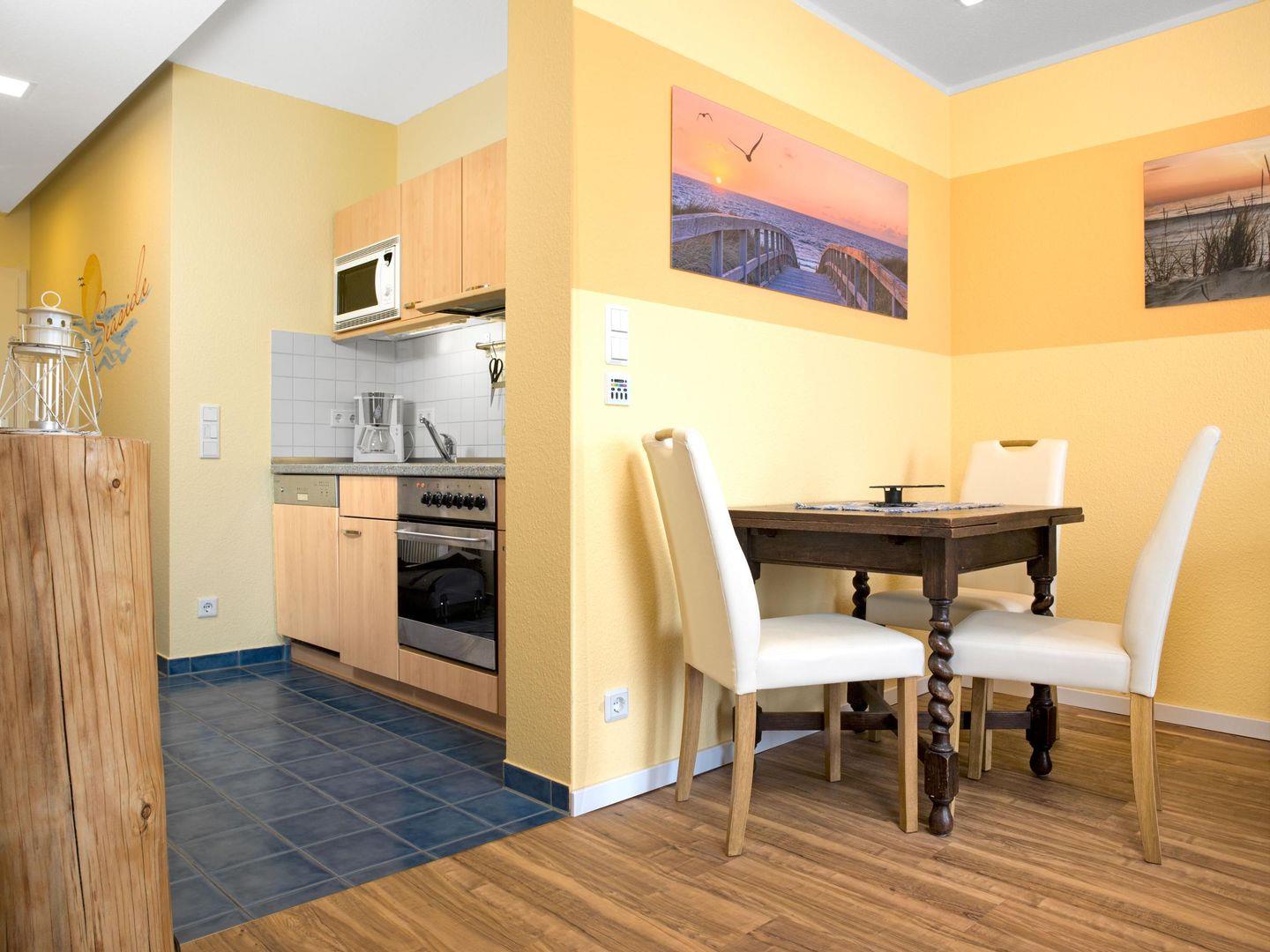 Das 1-Zimmer-Appartement „Seaside“ ist ca. 44m² groß und bietet Platz für 2 Personen, im zweiten Obergeschoss eines Appartementhauses, direkt am Strand vom Schwarzen Busch. Kuschelig eingerichtetes Wohn/ Ess- und Schlafzimmer mit Doppelbett und Sofaecke. Großer Nord-West-Balkon mit Meerblick. Das Bad ist ausgestattet mit Dusche und WC.