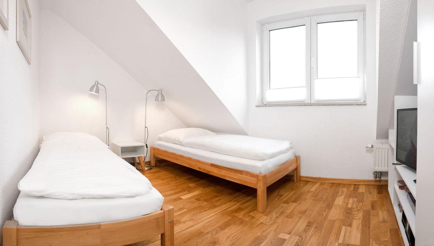 Das Appartement "Morgenstern" ist eine geräumige Unterkunft direkt am Strand vom Schwarzen Busch. Mit einer Größe von 65m² bietet es ausreichend Platz für bis zu sechs Personen über zwei Ebenen. Das Appartement verfügt über drei Schlafzimmer, wovon zwei mit einem Doppelbett und eines mit zwei Einzelbetten ausgestattet sind. Das dritte Schlafzimmer befindet sich im Dachgeschoss, welches Sie über eine kleine Wendeltreppe erreichen, dieser Raum ist offen zum Wohnzimmer. Das Bad ist mit einer Badewanne und WC ausgestattet und es gibt auch ein separates Gäste-WC. Genießen Sie Ihren Aufenthalt in dieser gemütlichen Unterkunft und lassen Sie sich vom Rauschen des Meeres in den Schlaf wiegen.