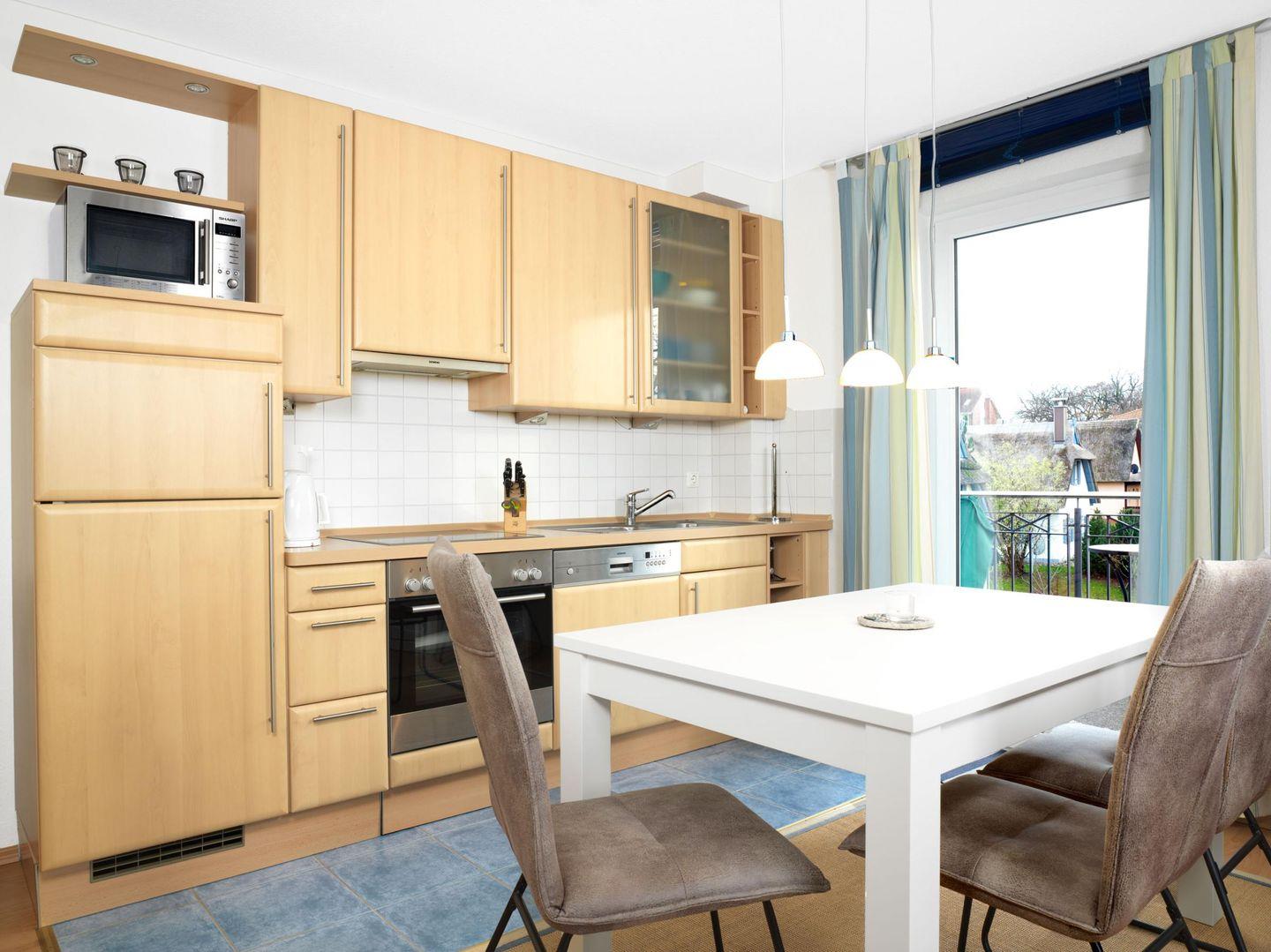 Diese gemütliche und helle Ferienwohnung befindet sich im 2. Obergeschoss der Landhaus Residenz Kirchsee. Nach nur ca. einer Minute Fußweg sind Sie am Strand.