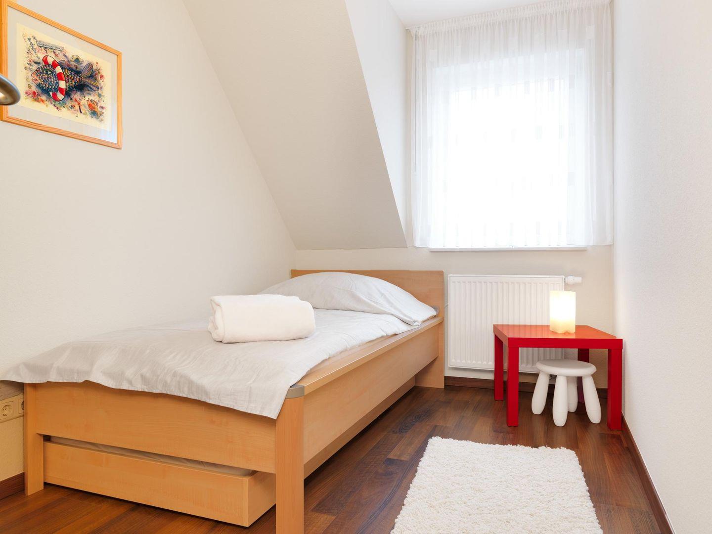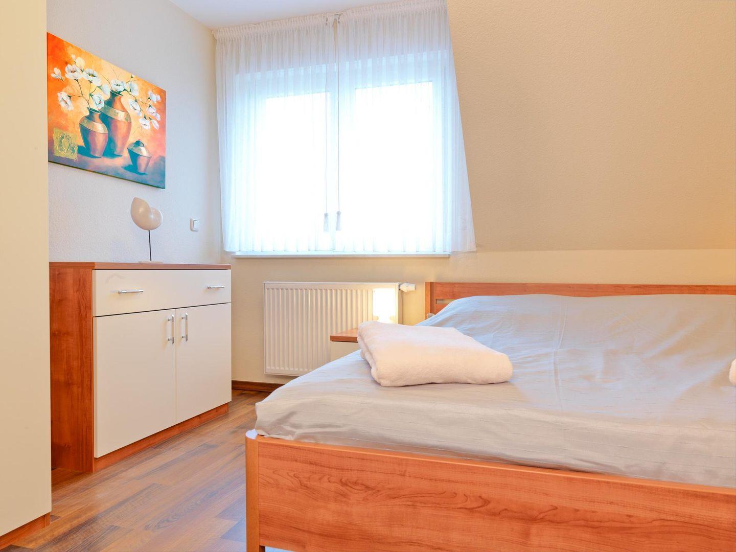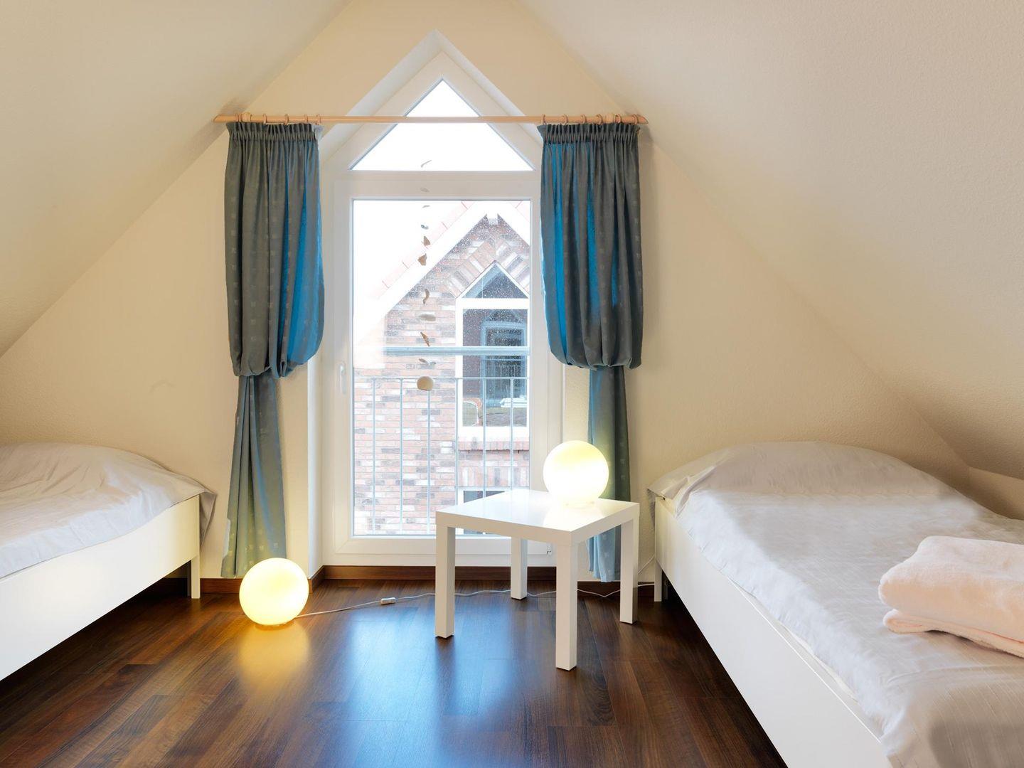Im DG erwartet Sie ein weiteres kuscheliges Schlafzimmer unter Schrägen mit 2 Einzelbetten.