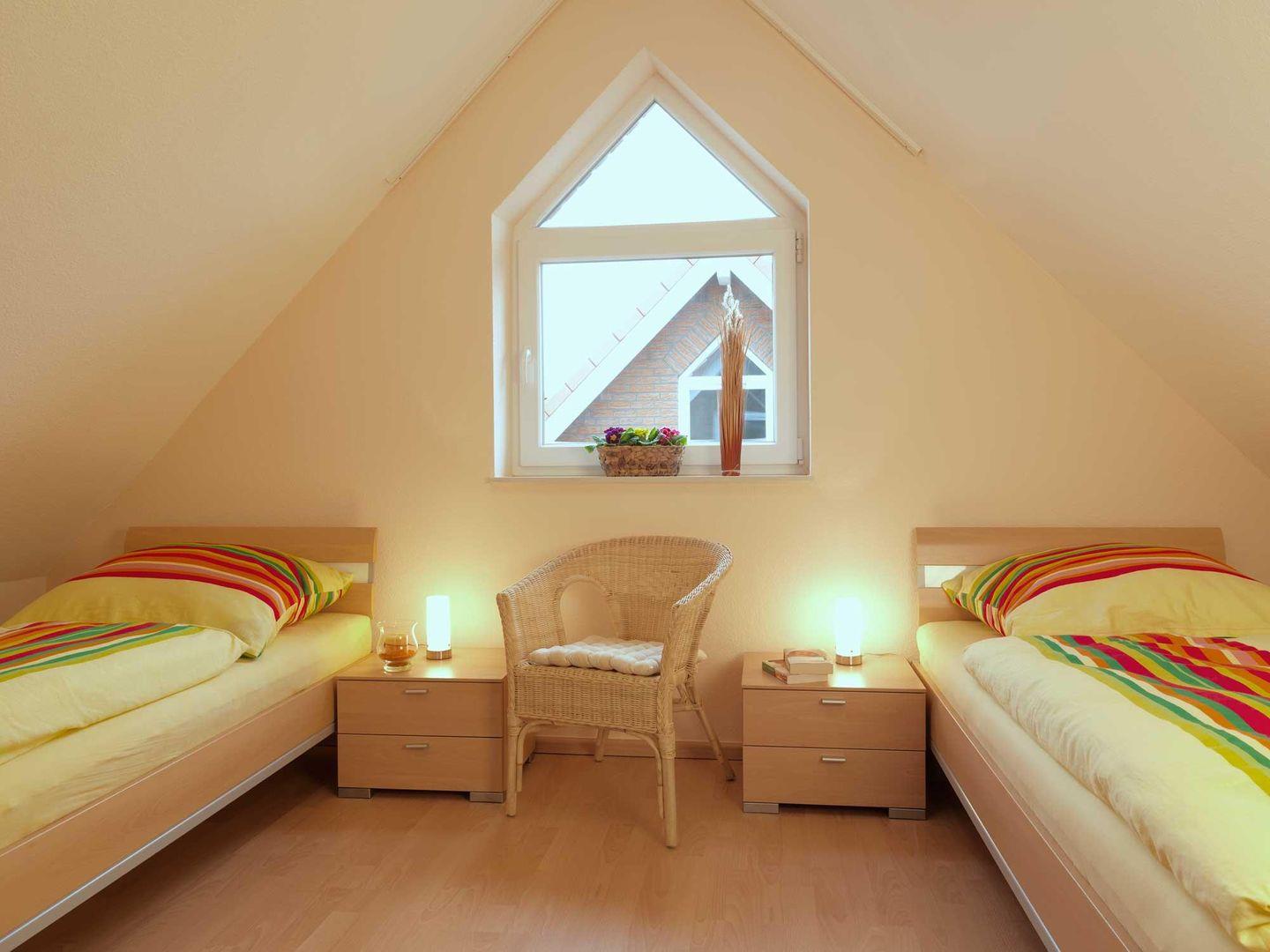 Im ausgebauten Dachgeschoß, kuschelig unter Schrägen, befinden sich zwei weitere Einzelbetten.
