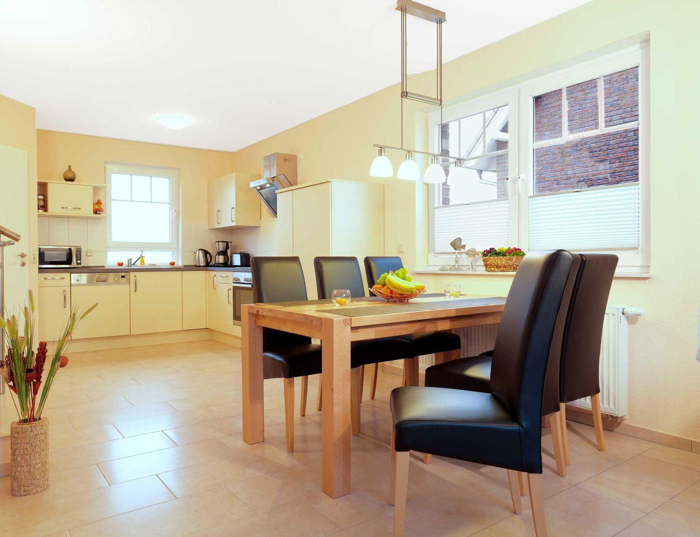 Im Erdgeschoss befindet sich der großzügige, helle Wohn-Eßbereich mit der offenen Einbauküche.