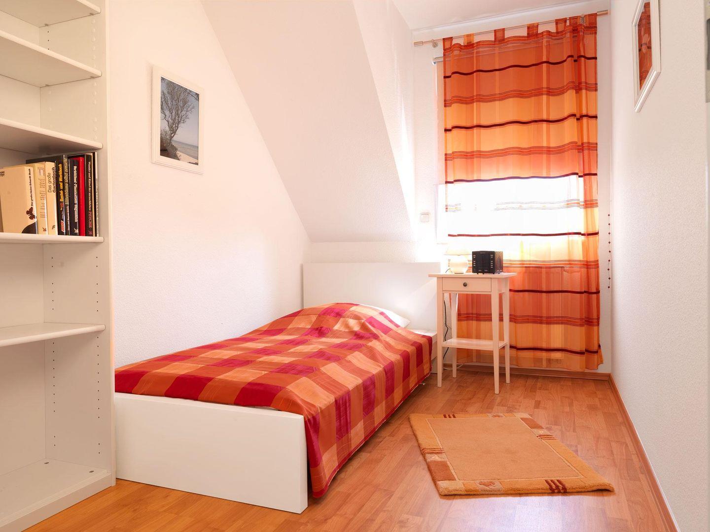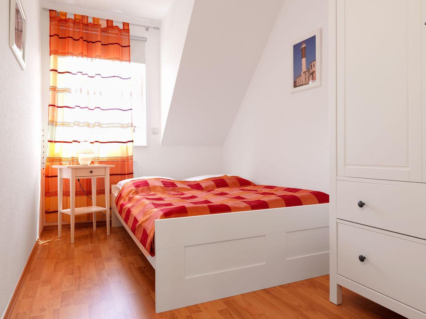 Die vier gemütlichen Schlafzimmer für insgesamt 6 Personen sind wie folgt ausgestattet: ein Schlafzimmer mit Einzelbett, zwei Schlafzimmer mit einem Doppelbett (1x1,40x2,00m und 1x1,80x2,00m) sowie im Dachgeschoß ein heller, freundlicher Raum mit zwei Einzelbetten.