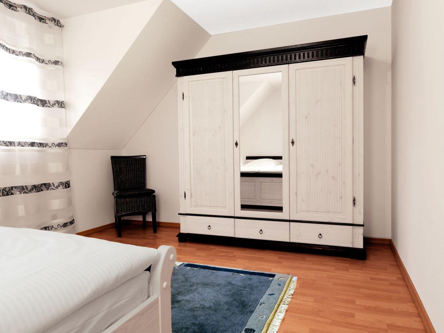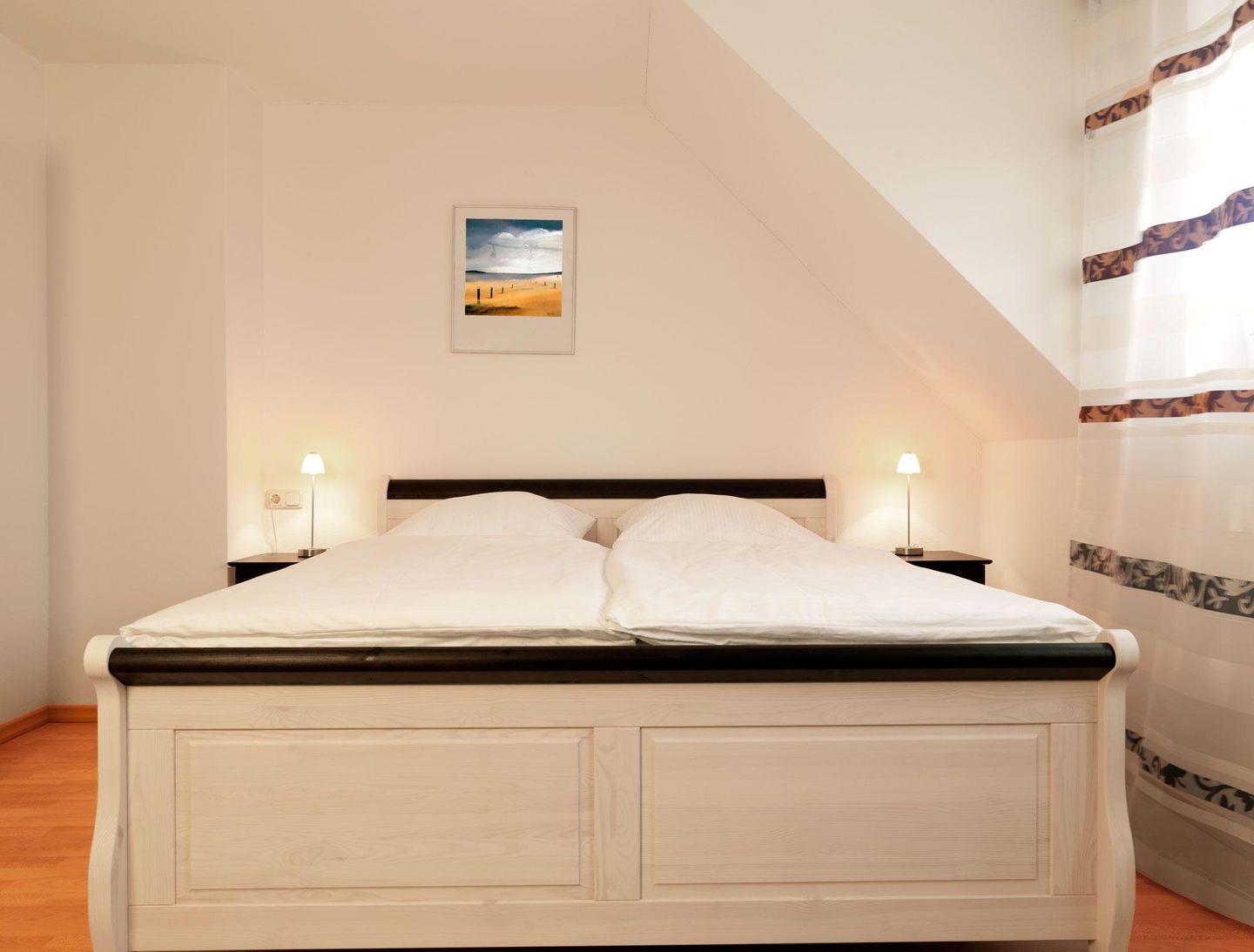 Im Obergeschoss erwarten Sie ein Badezimmer mit Dusche/WC, ein Schlafzimmer mit zwei Einzelbetten sowie ein Schlafzimmer mit einem Doppelbett bieten insgesamt 4 Personen ausreichend Platz.