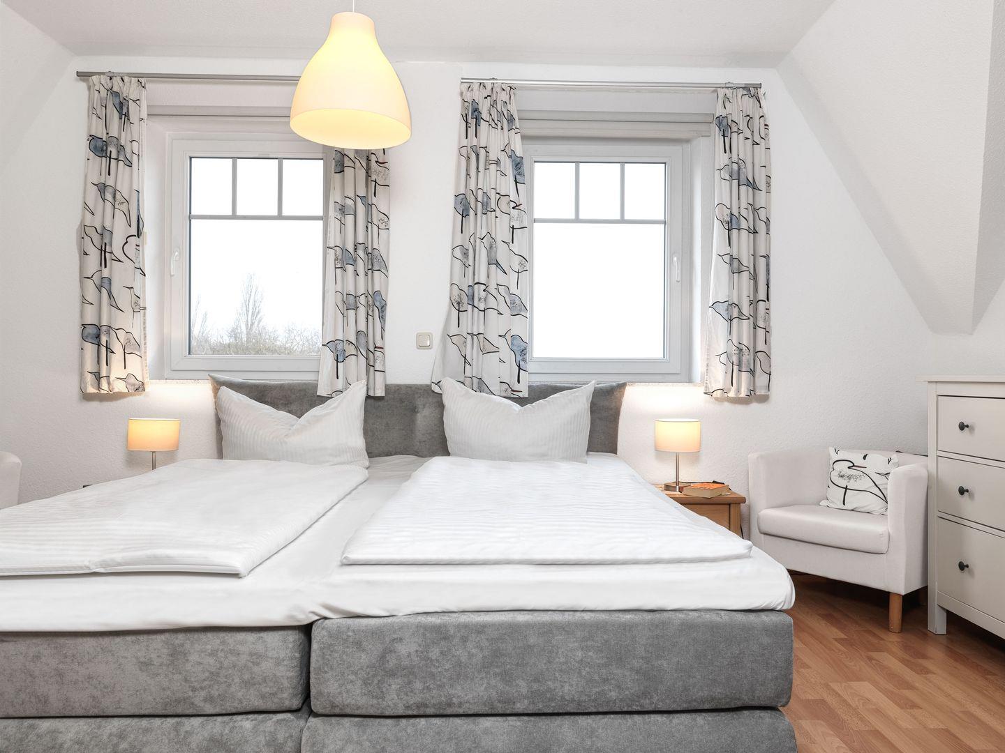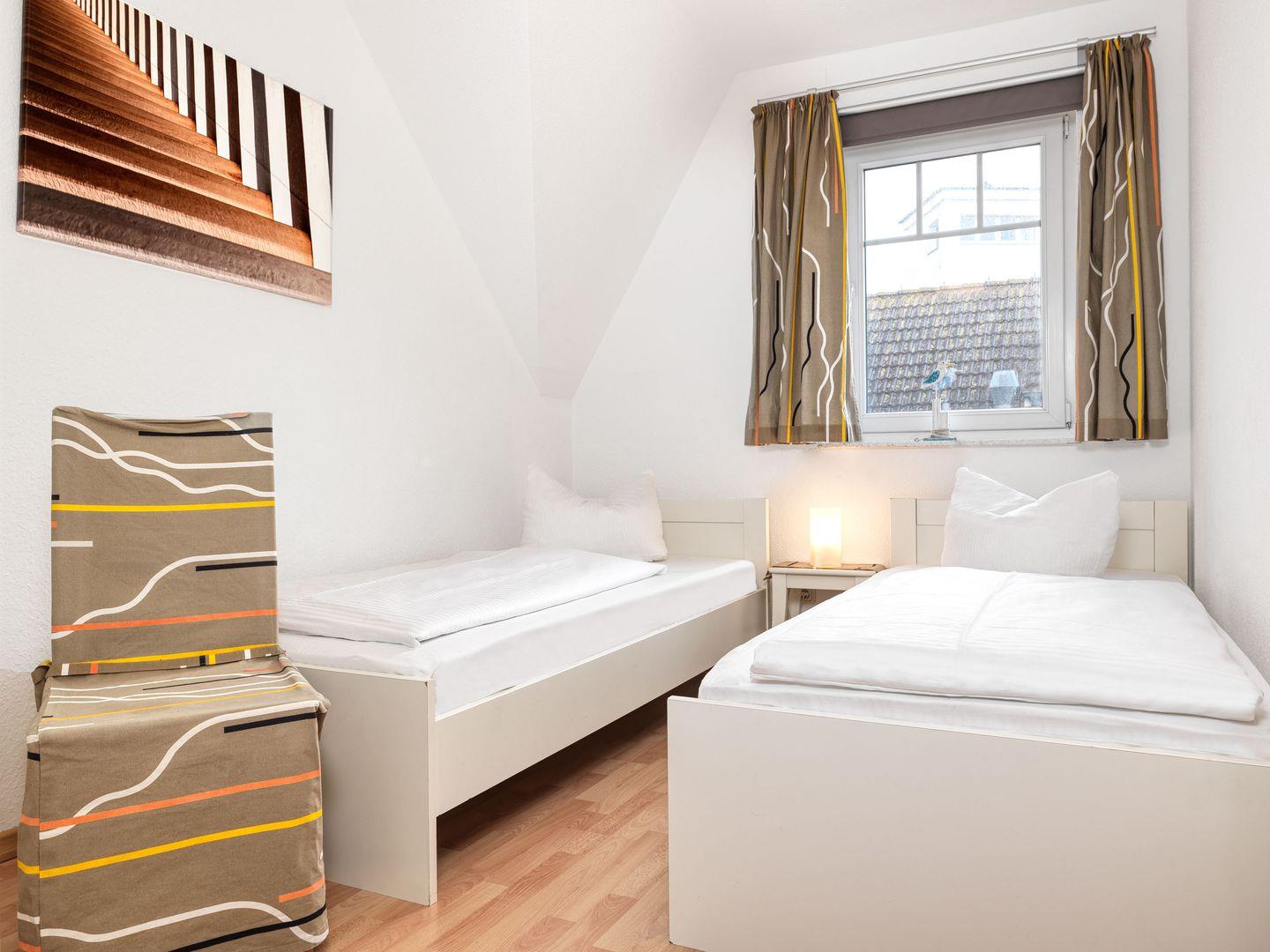 Im Obergeschoss erwarten Sie ein Badezimmer mit Dusche/WC, zwei Schlafzimmer (eines davon mit SAT-TV) mit je zwei Einzelbetten sowie ein Schlafzimmer mit einem Doppelbett für insgesamt 6 Personen.