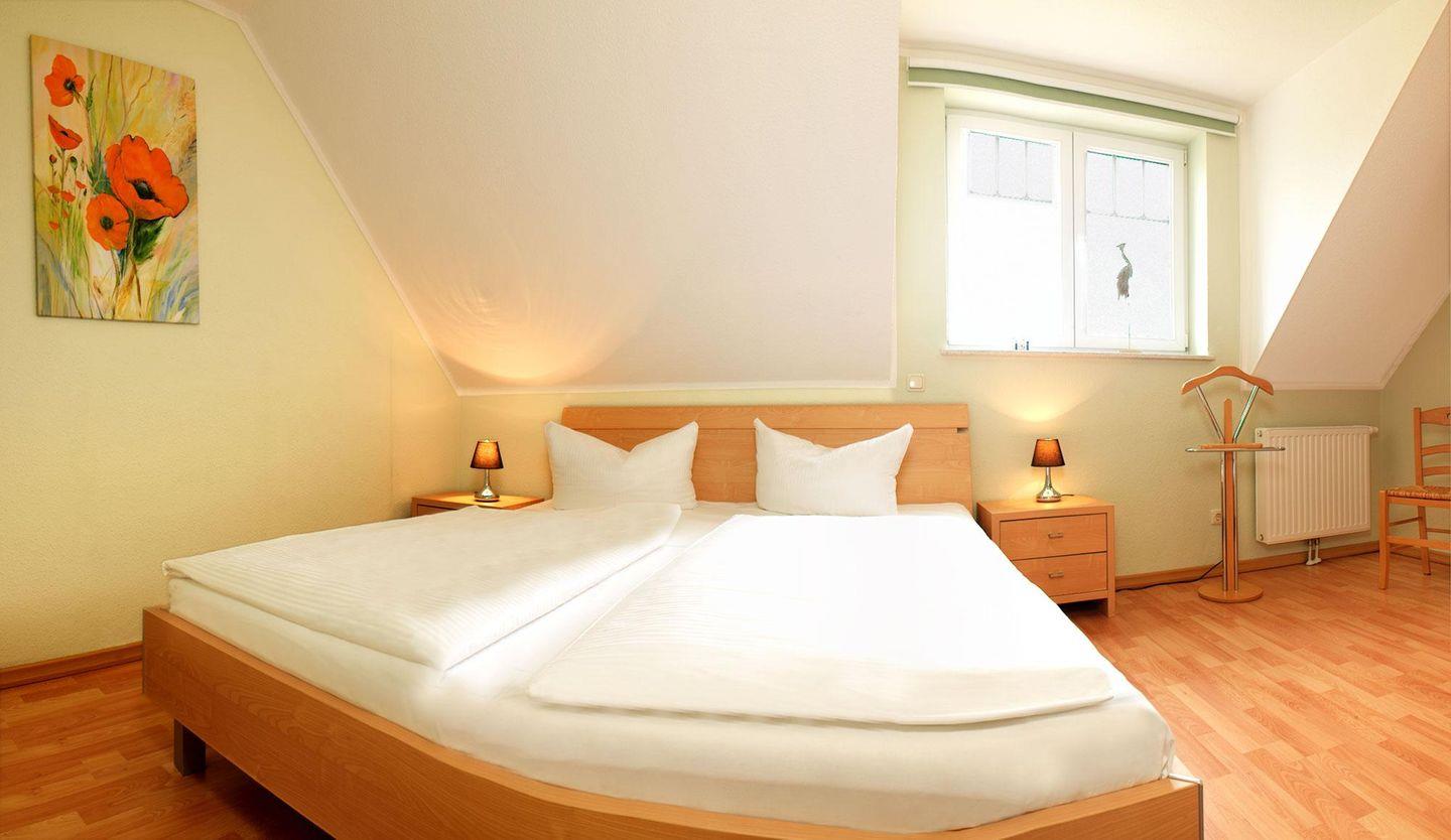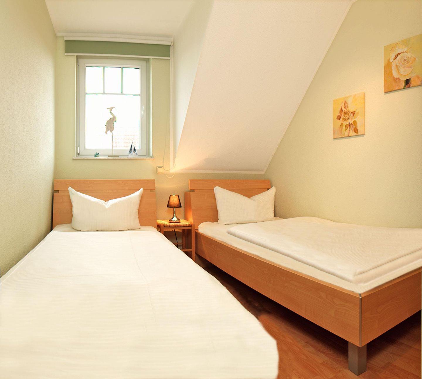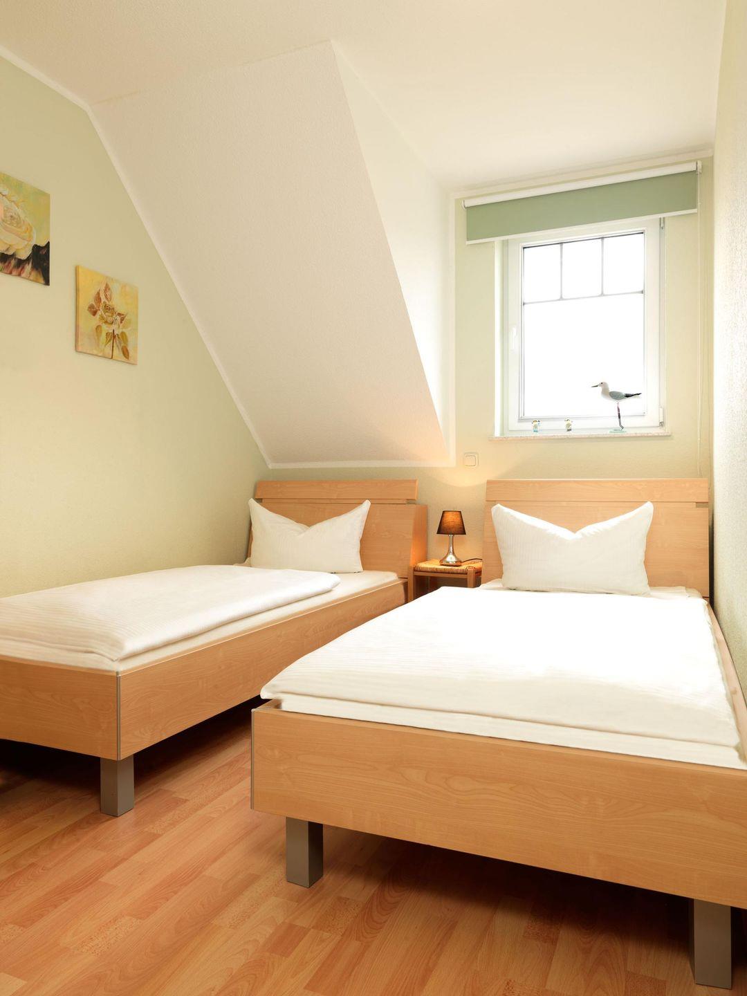 Im Obergeschoss erwarten Sie ein Badezimmer mit Dusche/WC, zwei Schlafzimmer mit je zwei Einzelbetten sowie ein Schlafzimmer mit einem Doppelbett für insgesamt 6 Personen.