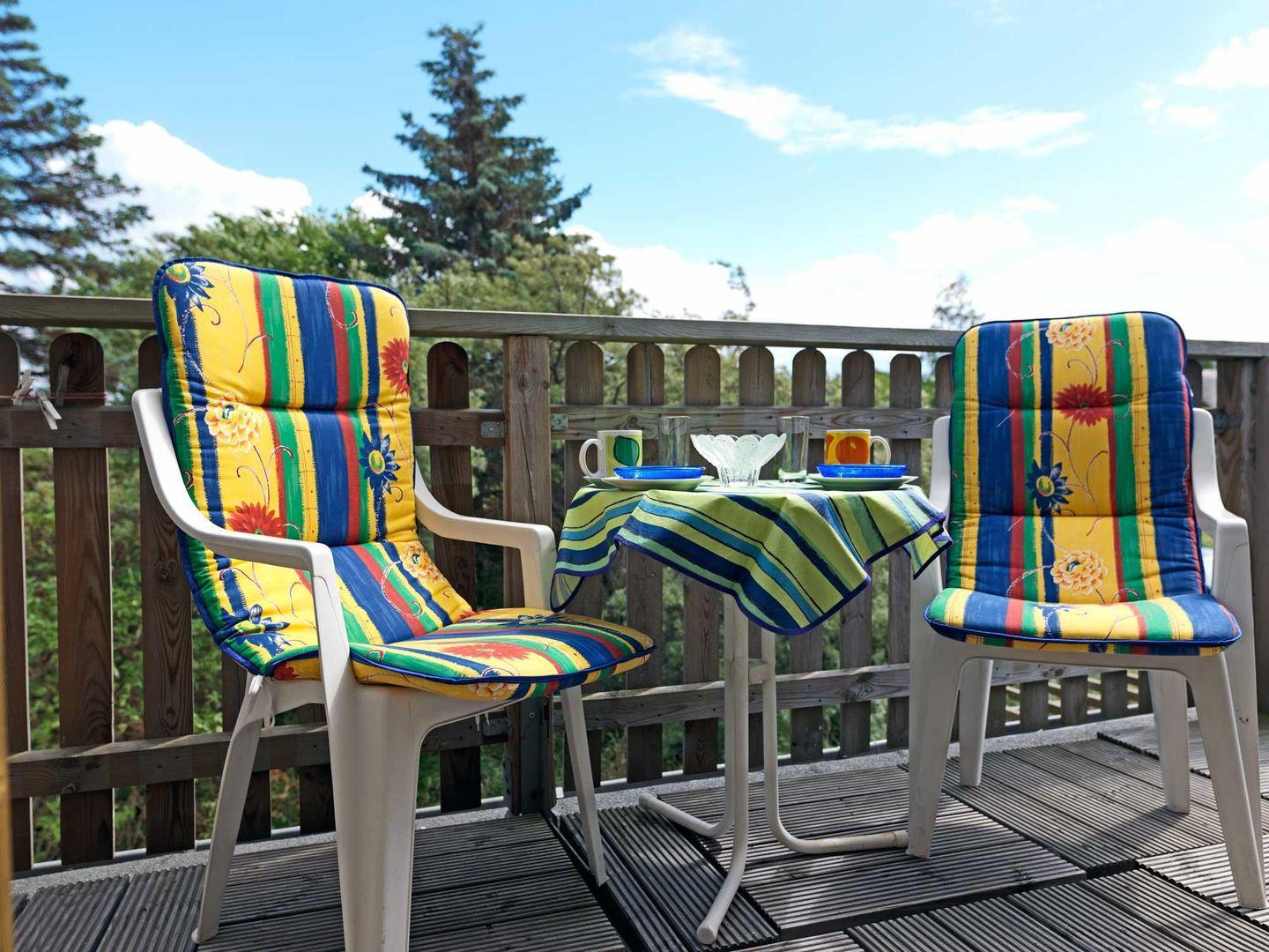 Vom Wohnbereich gelangen Sie auf den möblierten Balkon von dem Sie auf den Hafen und aufs Meer blicken können.