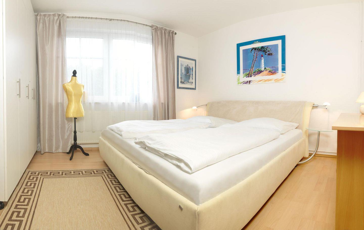 Das großzügige Schlafzimmer verfügt über ein Doppelbett. Eine zusätzliche Aufbettung (Couch) ist im Wohnzimmer für maximal 1 Kind möglich.