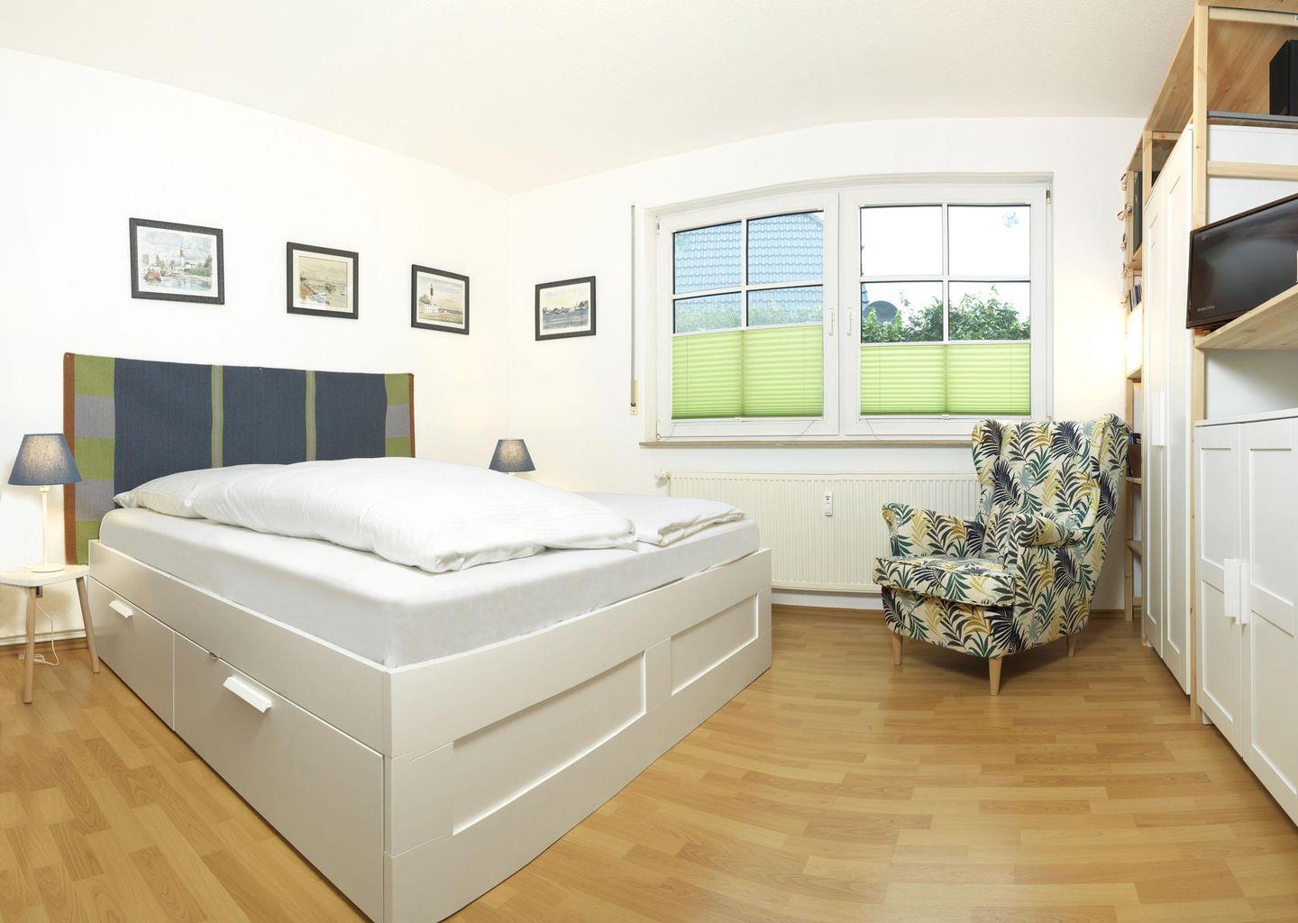 Das großzügige Schlafzimmer verfügt über ein Doppelbett (1,80 x 2,00).