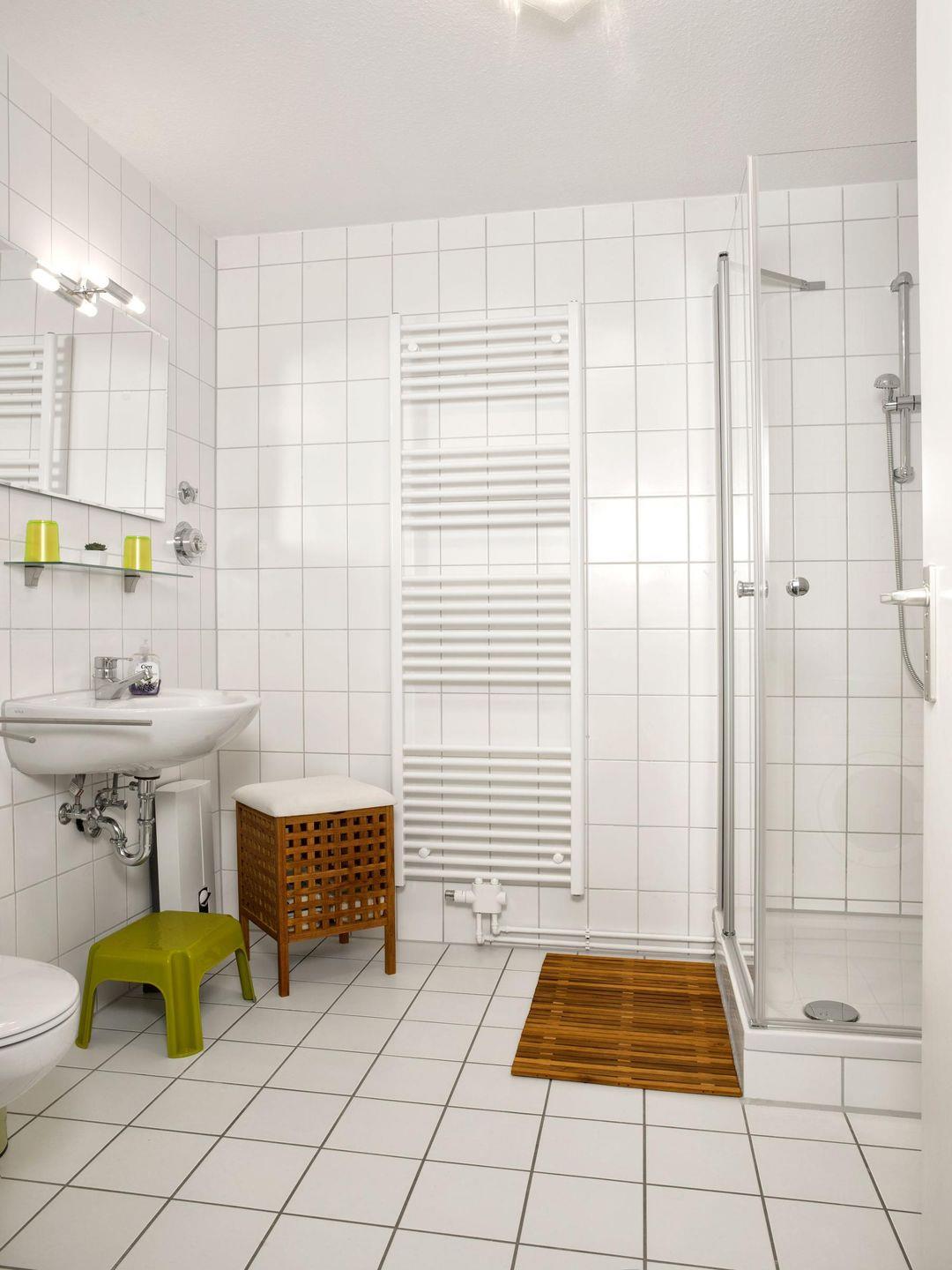 Das Bad ist mit Dusche/WC ausgestattet.