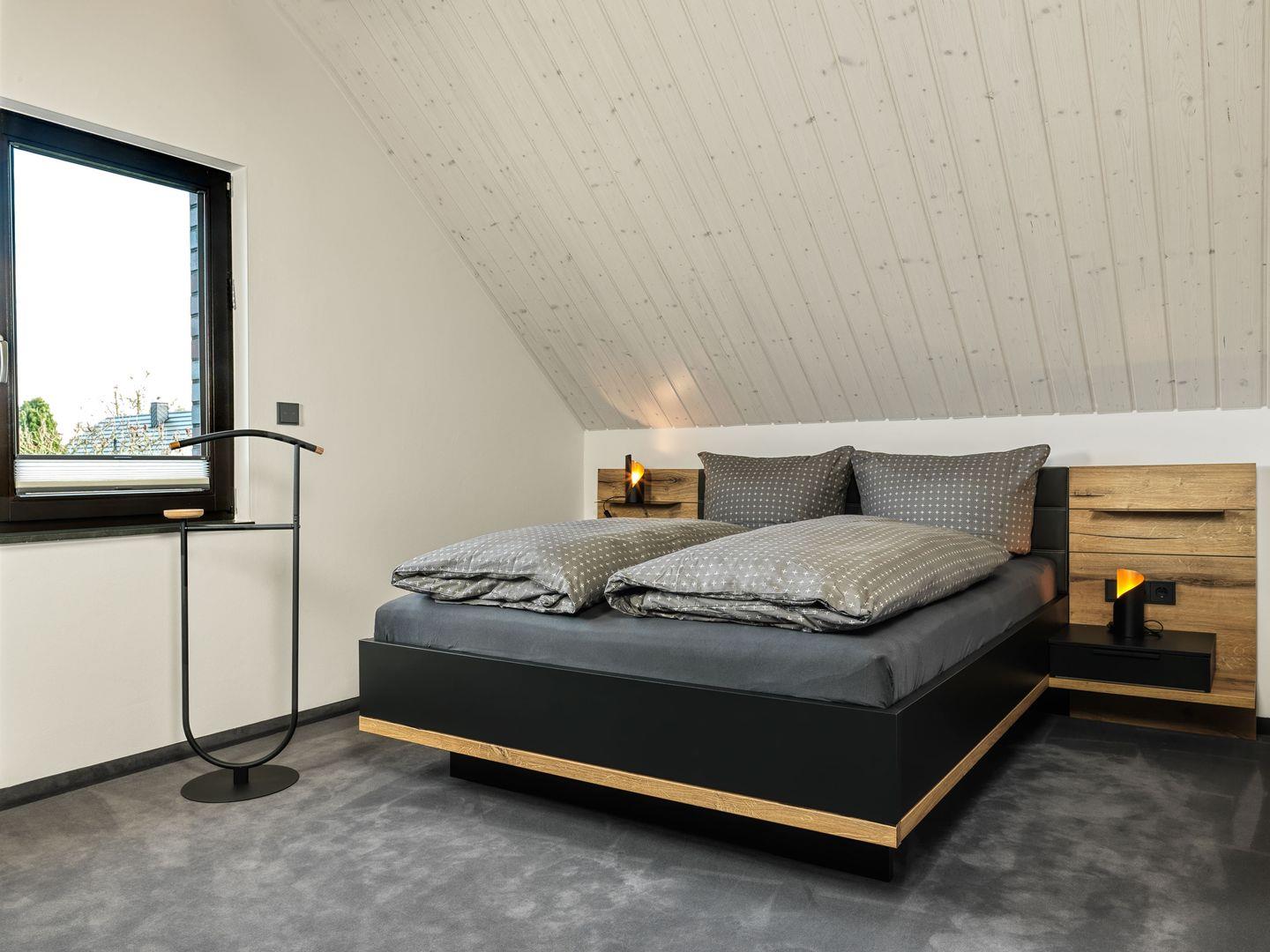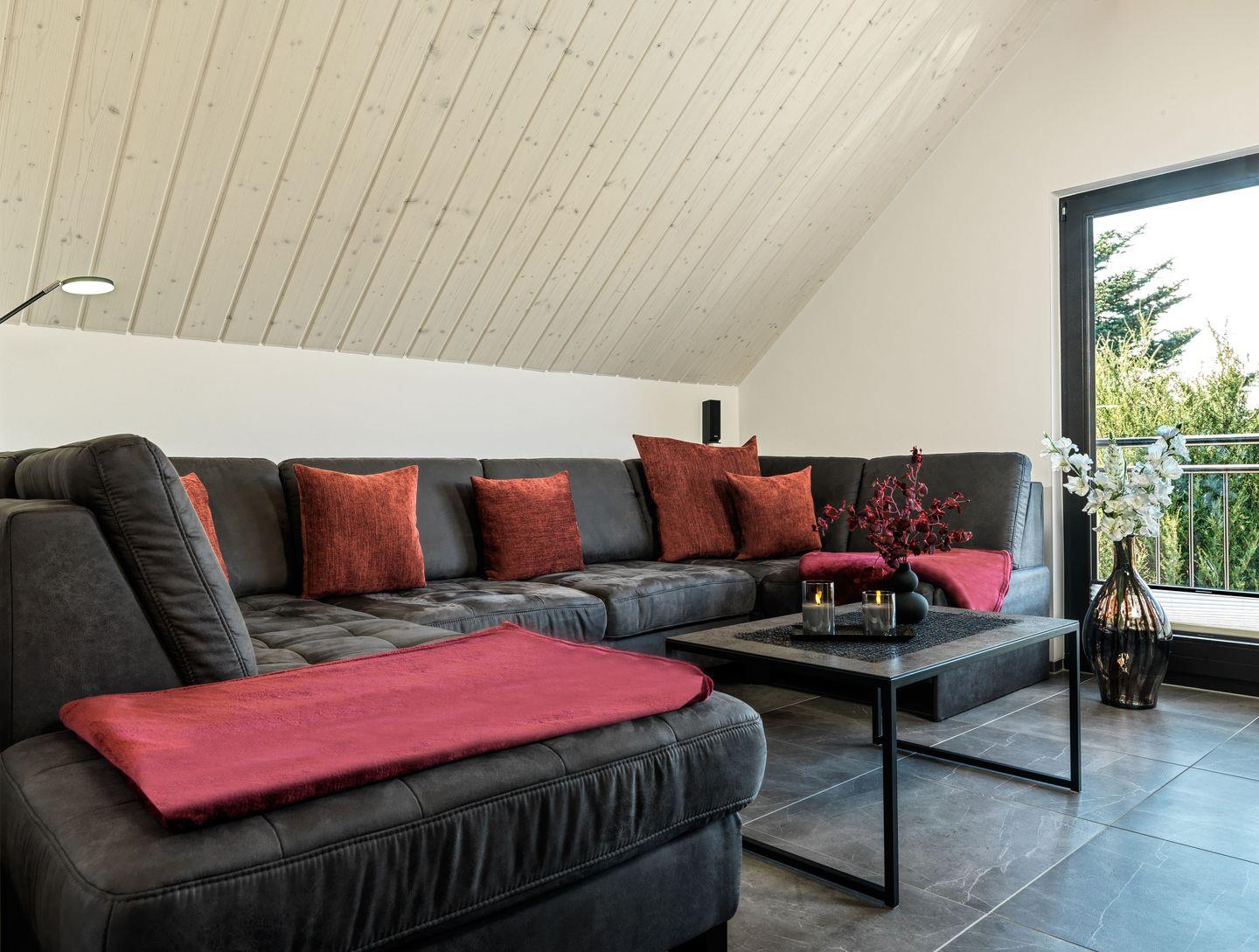 Im OG befindet sich ein Schlafzimmer mit Doppelbett, ein Bad mit Badewanne sowie ein geräumiges Wohnzimmer mit einer gemütlichen Sitzecke mit TV/DVD und kostenlos Netflix.