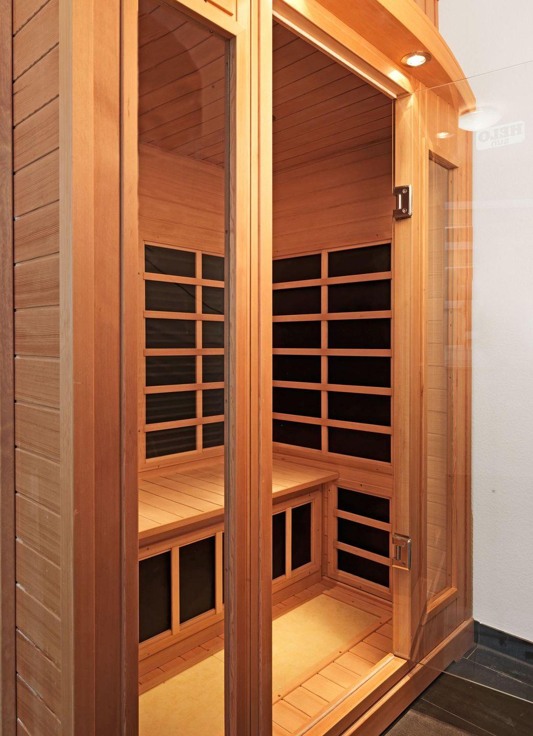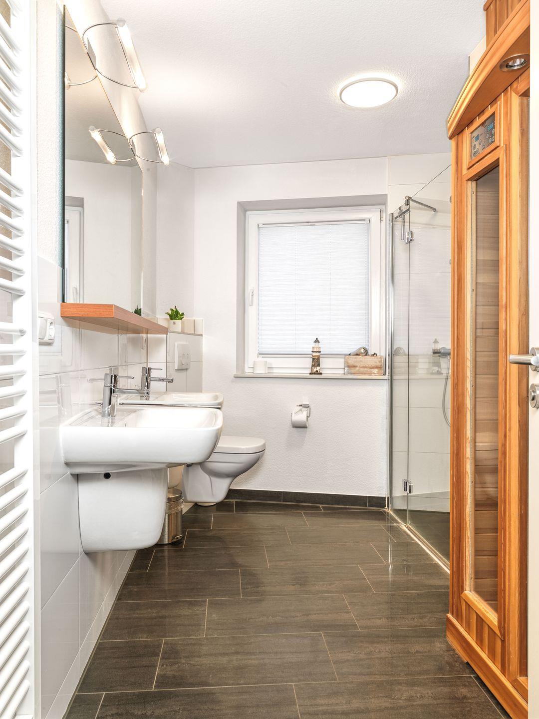 Zwei geräumige Schlafzimmer mit Doppelbetten sowie ein großzügiges Bad mit Infrarot-Wärmekabine und ein Gäste-WC lassen bis zu 6 Personen einen entspannten Urlaub verleben.