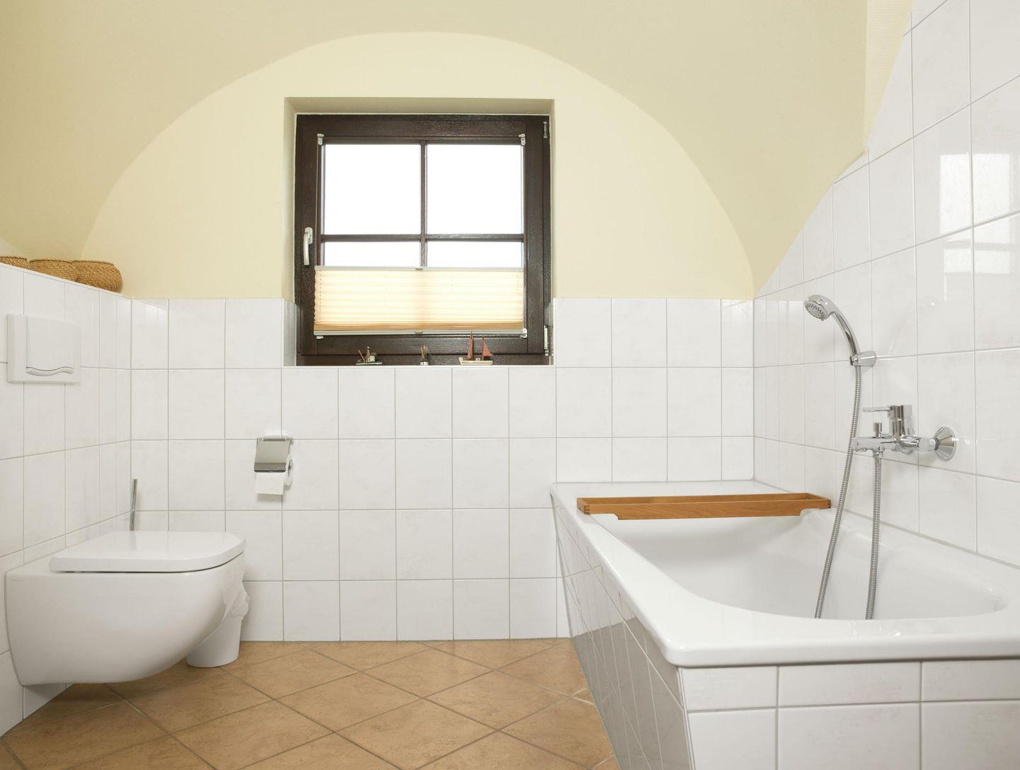 Zusätzlich befindet sich ein großes Bad im OG mit Badewanne, Waschbecken und WC.
