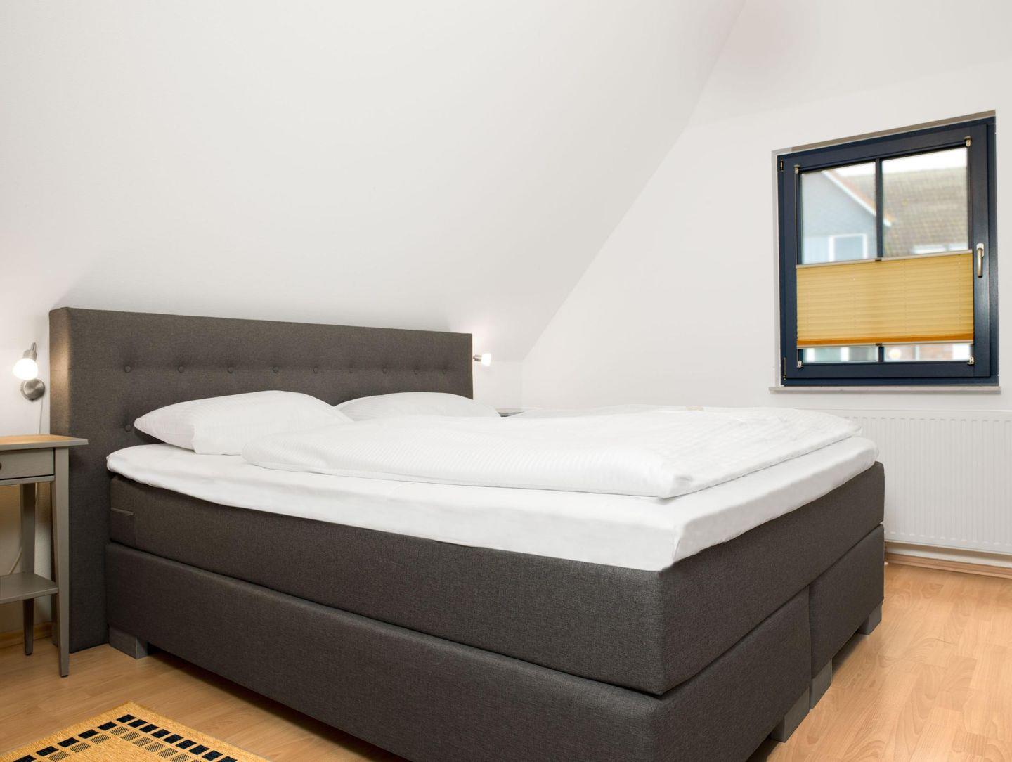 Im Obergeschoss finden Sie zwei schöne, kuschelige Schlafzimmer, beide mit Boxspringbetten ausgestattet ( ein Zustellbett vorhanden).