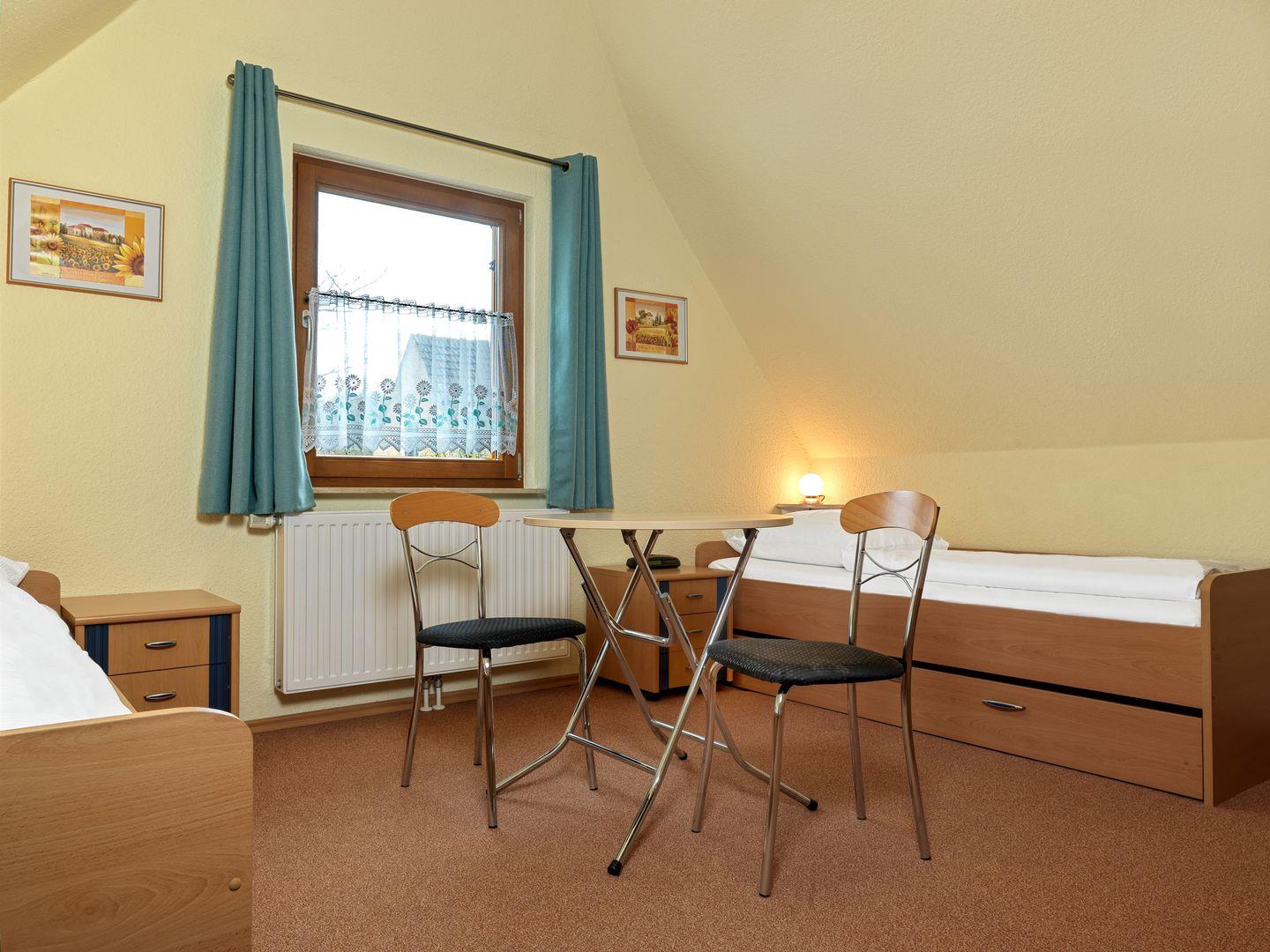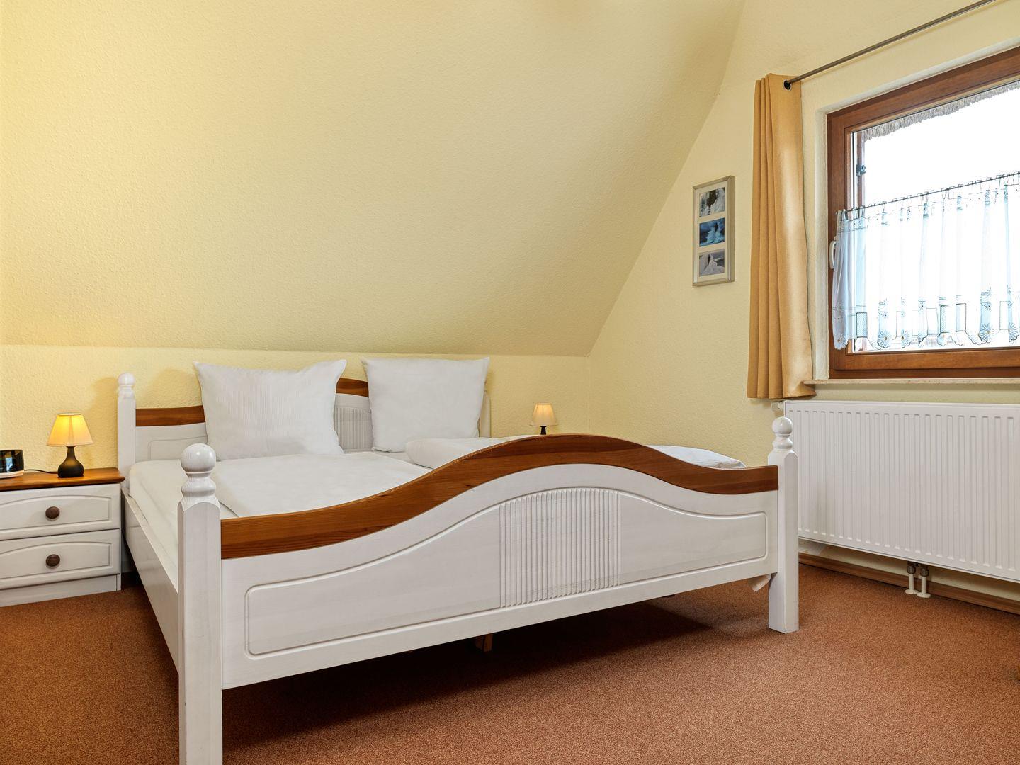 Im Obergeschoss warten zwei separate Schlafzimmer für einen erholsamen Schlaf auf Sie: eines mit einem Doppelbett, das andere mit zwei Einzelbetten und der Möglichkeit eine weitere Schlafgelegenheit durch ein Ausziehbett zu schaffen. Beide Räume halten genügend Stauraum für Ihre Garderobe bereit. Insektenschutzgitter vor den Fenstern sperren Fliegen und Mücken aus.