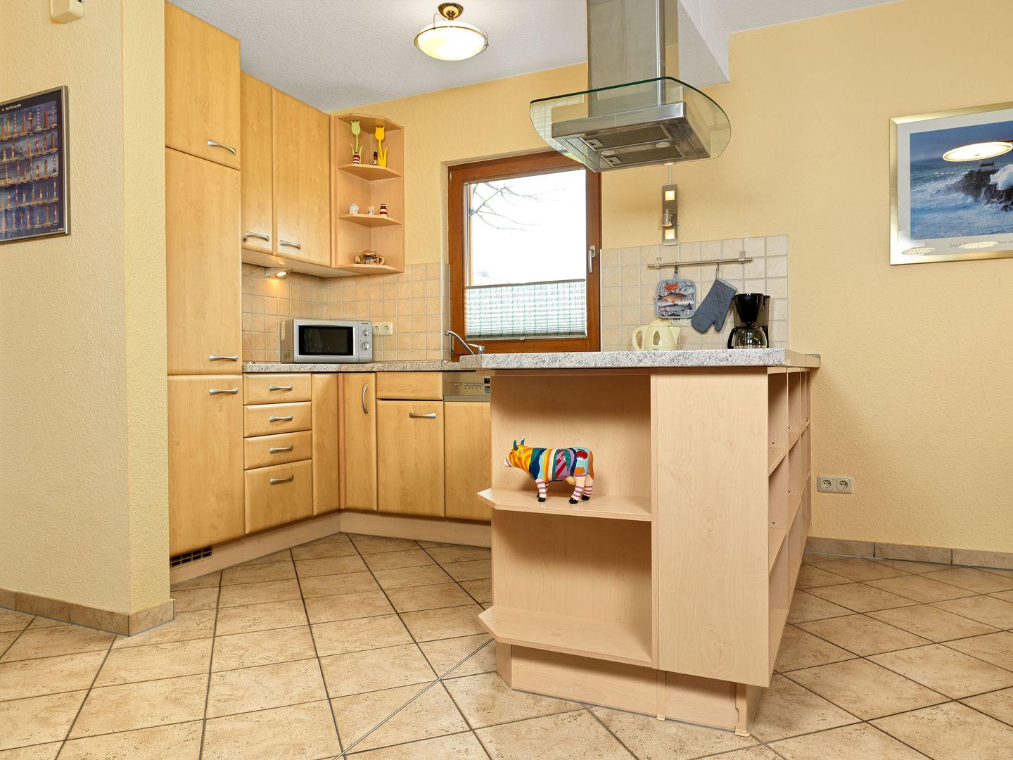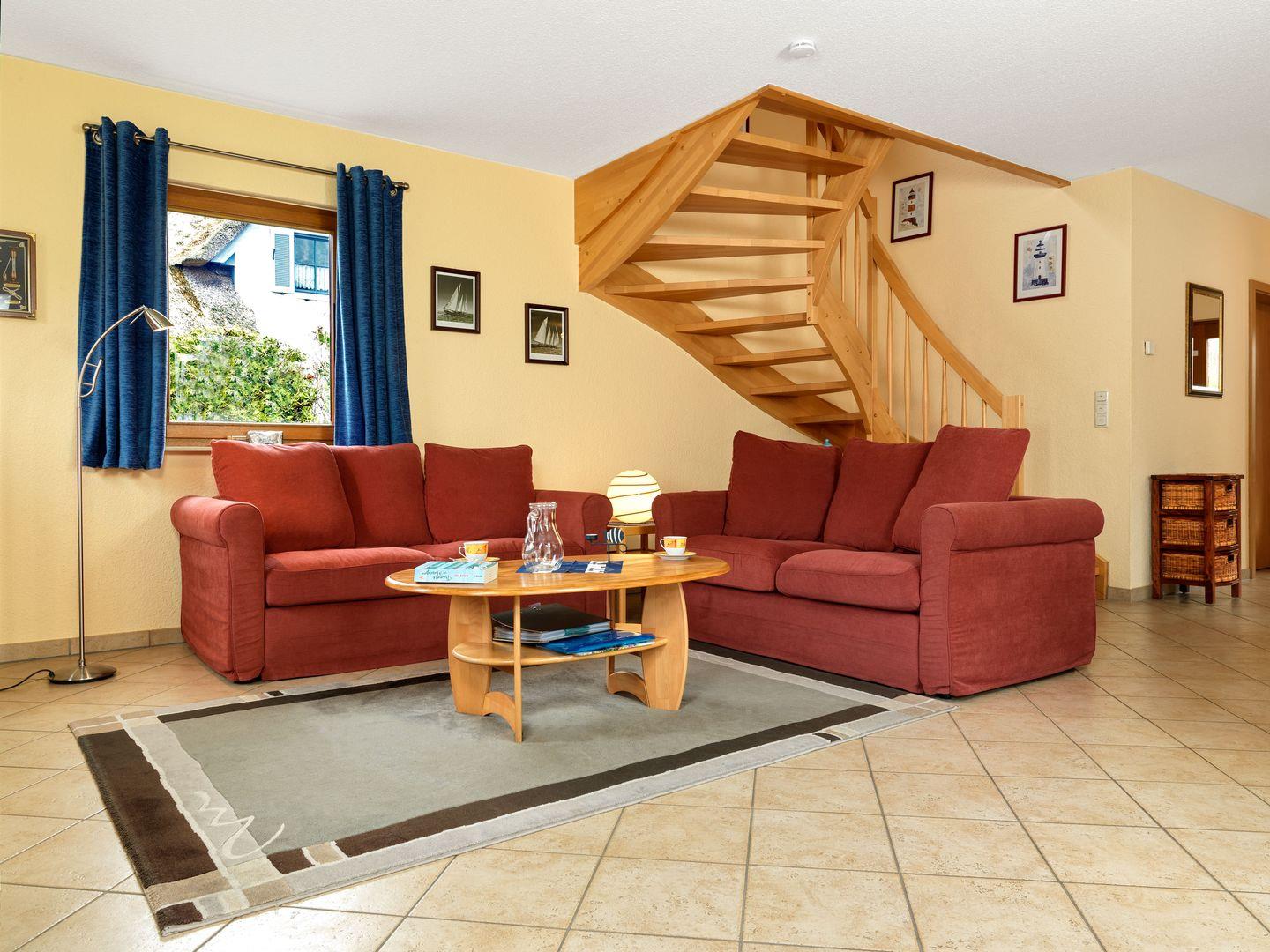 Beim Betreten des Ferienhauses empfängt Sie ein großzügiger und heller Wohn- und Essbereich mit integrierter Küche. Ausgestattet mit einem LCD-TV-Gerät, zwei bequemen Sofas und dem Kamin erleben Sie hier gemütliche Stunden - vielleicht mit einem spannenden Buch aus der vorhandenen Bücherecke. Sollte es Sie in die große weite Welt ziehen, steht Ihnen im Haus und im Garten kostenlos WLAN zu Verfügung.