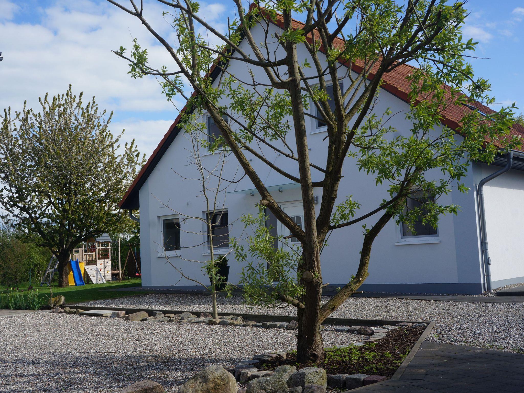Der Garten grenzt an ein Naturschutzgebiet und ist in Sichtweite zum Breitling (Ostsee) gelegen, so dass Sie die ungestörte Ruhe und den Blick auf die Bucht genießen können.