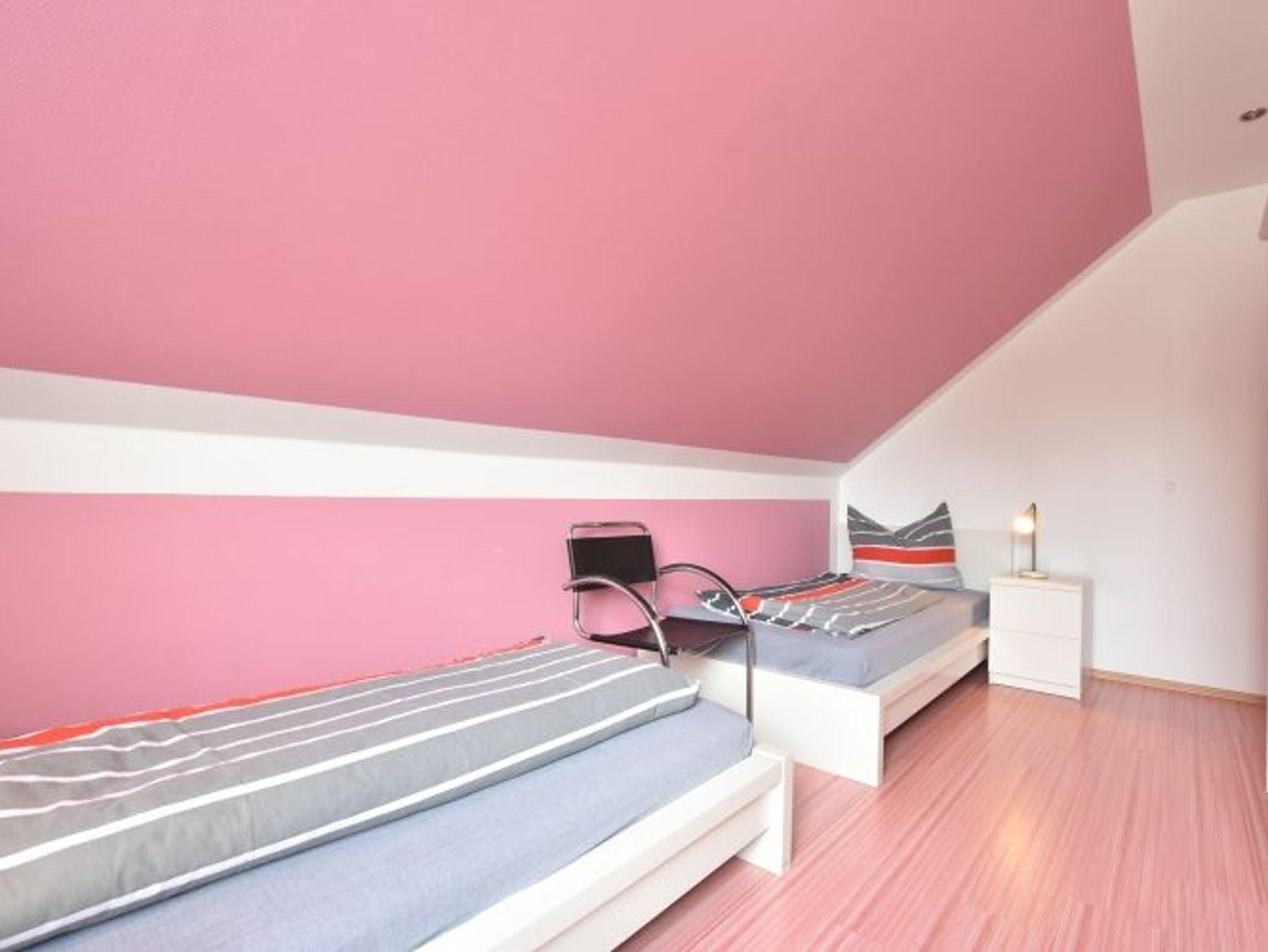 Im Erdgeschoss befinden sich zwei Schlafzimmer, ein Zwei- und ein Dreibettzimmer (ein Einzelbett und ein Stockbett). Im ersten Stock gibt es drei weitere Zweibettzimmer sowie einen Wohn-/ Fernsehraum. Dieser kann als zusätzliches Wohnzimmer genutzt werden.