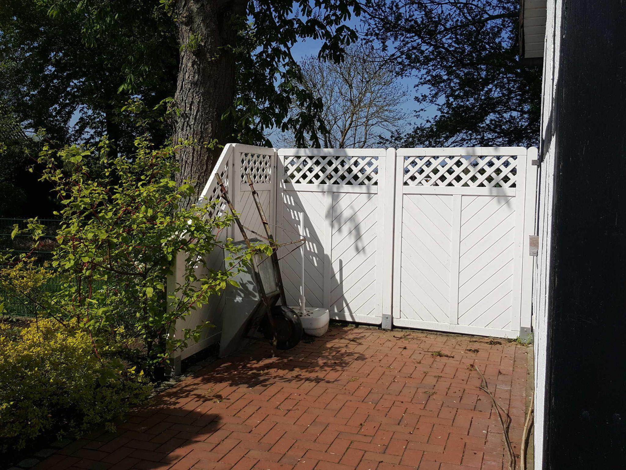 Es verfügt über eine Terrasse mit Gartenmöbel und Grill.